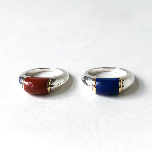 SOLD- Pair of Cartier Lapis and Jasper Stacking Rings 18k/Sterling c. 1970, size 5