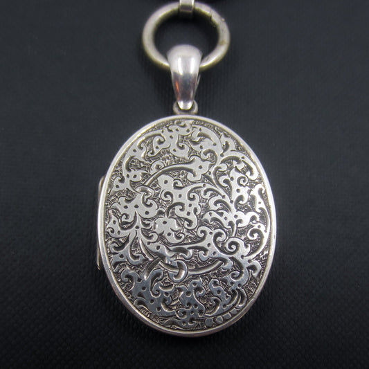 SOLD-Victorian Engraved Locket and Bookchain Sterling c. 1880