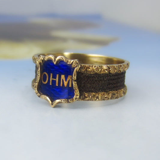 SOLD-Victorian Enamel Hair Mourning Ring 15k, Size 8 c. 1870