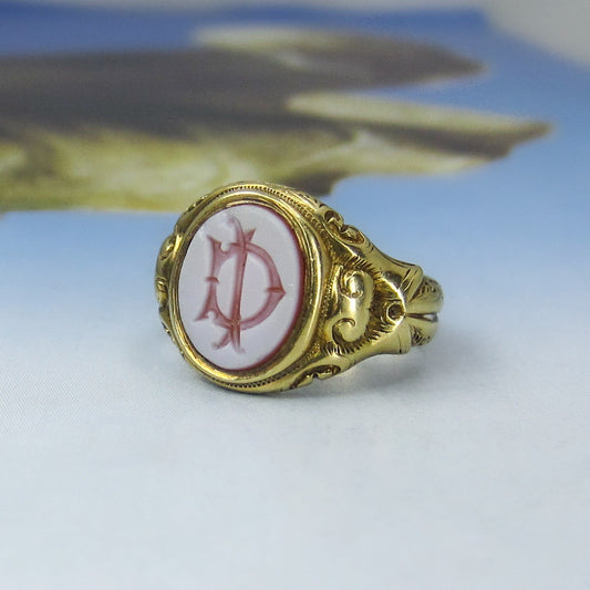SOLD-Victorian Hardstone Intaglio Signet Pinky Ring 15k c. 1887