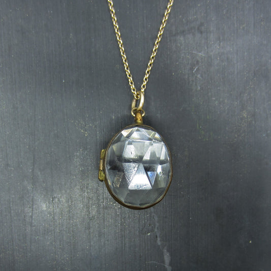 SOLD-Victorian Faceted Crystal Egg Locket Gold-Filled c. 1890