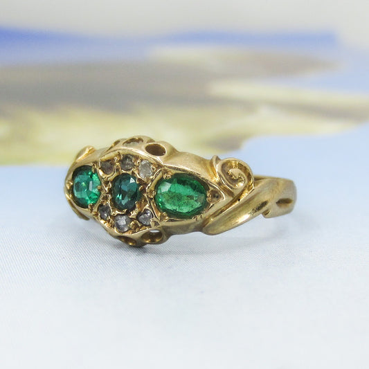 SOLD-Victorian Diamond and Emerald Ring 18k, British c. 1880