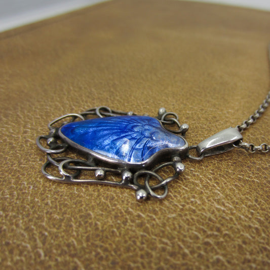 SOLD-Rare Arts & Crafts Newlyn School Enamel Pendant Sterling c. 1900