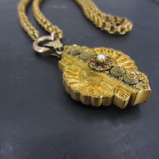 SOLD-Victorian Etruscan Revival Locket and Chain Gold-Filled c. 1880