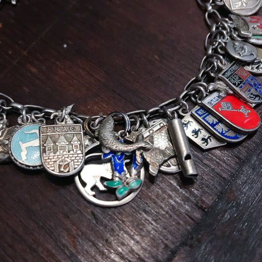 SOLD-ULTIMATE Travel Charm Bracelet Silver c. 1960