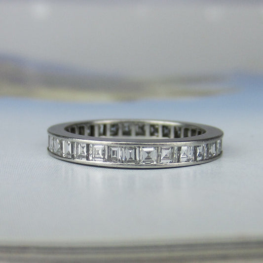 SOLD-Square Carre Cut Diamond Eternity Band Platinum, Size 6 c. 1940