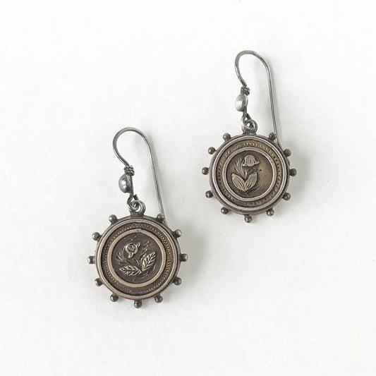 SOLD-Victorian Flower Earrings Silver c. 1890