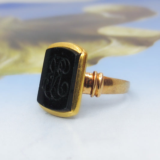 SOLD-Victorian Onyx Intaglio “RB” Signet 18k c. 1874