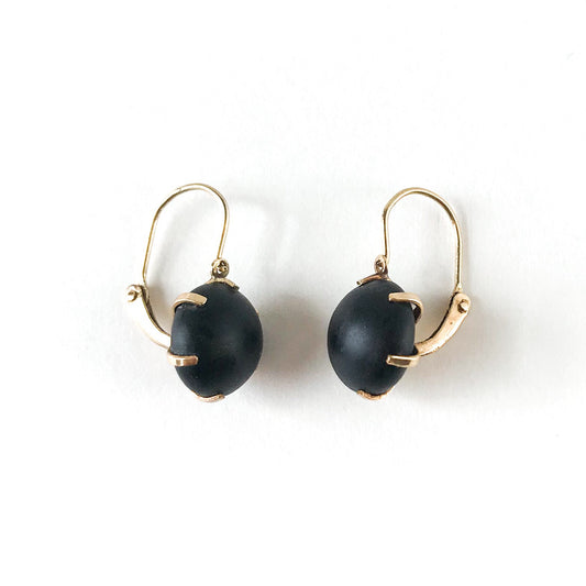 SOLD-Victorian Onyx Drop Earrings 14k c. 1890