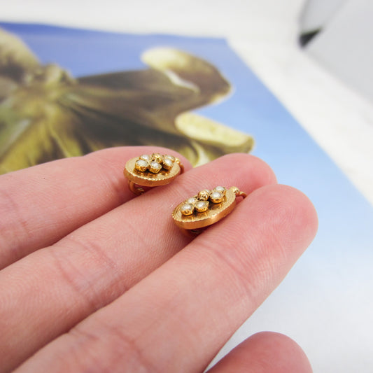 SOLD-Victorian Seed Pearl Earrings 18k, French c. 1890