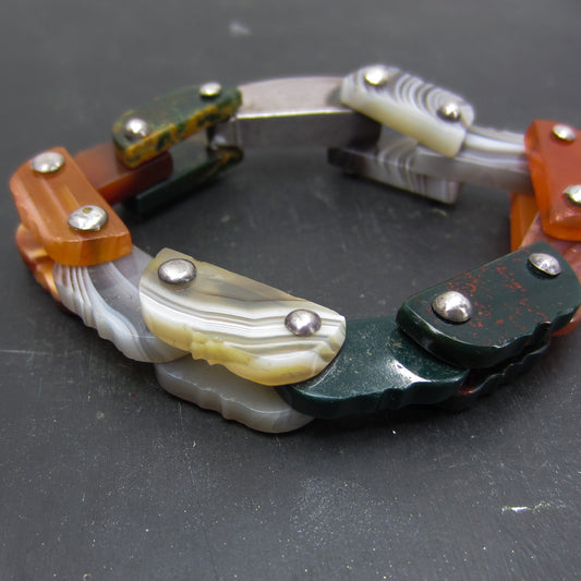 SOLD-Victorian Scottish Agate Bracelet Sterling c. 1880