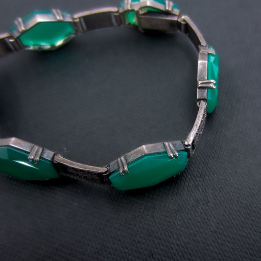 SOLD--Art Deco Chalcedony and Marcasite Bracelet Sterling c. 1930