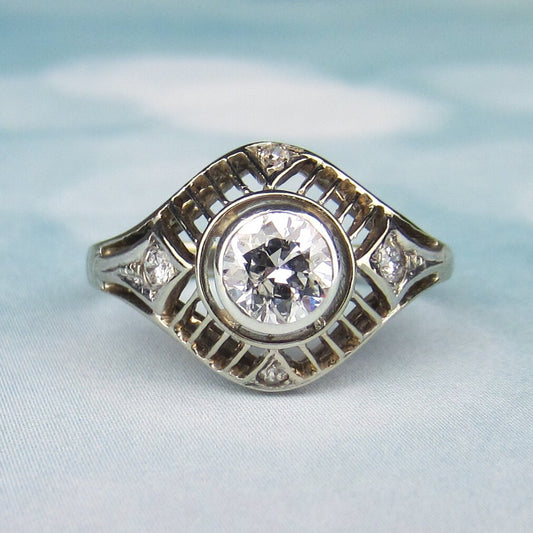 SOLD--Art Deco Diamond .60ct Filigree Engagement Ring 14k, Poland c. 1930