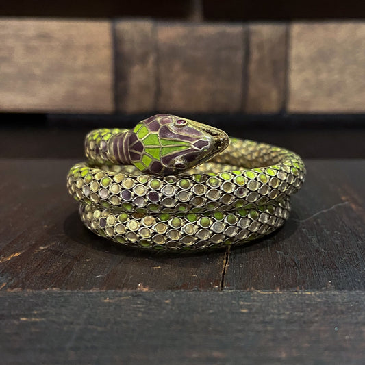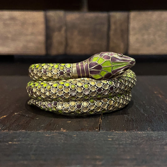 SOLD--Art Deco Enamel Coiled Snake Bracelet Gilt Sterling c. 1930