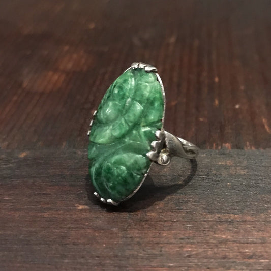 SOLD--Art Deco Carved Jade Ring Sterling c. 1930