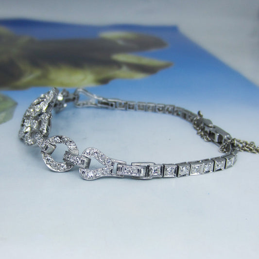 SOLD--Art Deco Diamond Cluster Bracelet Platinum c. 1930