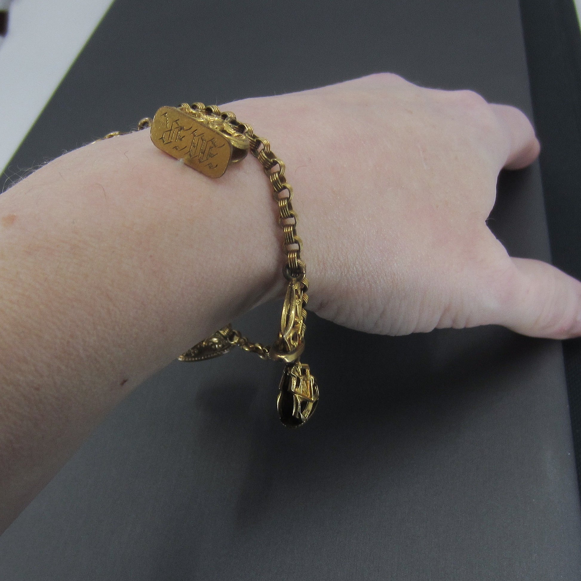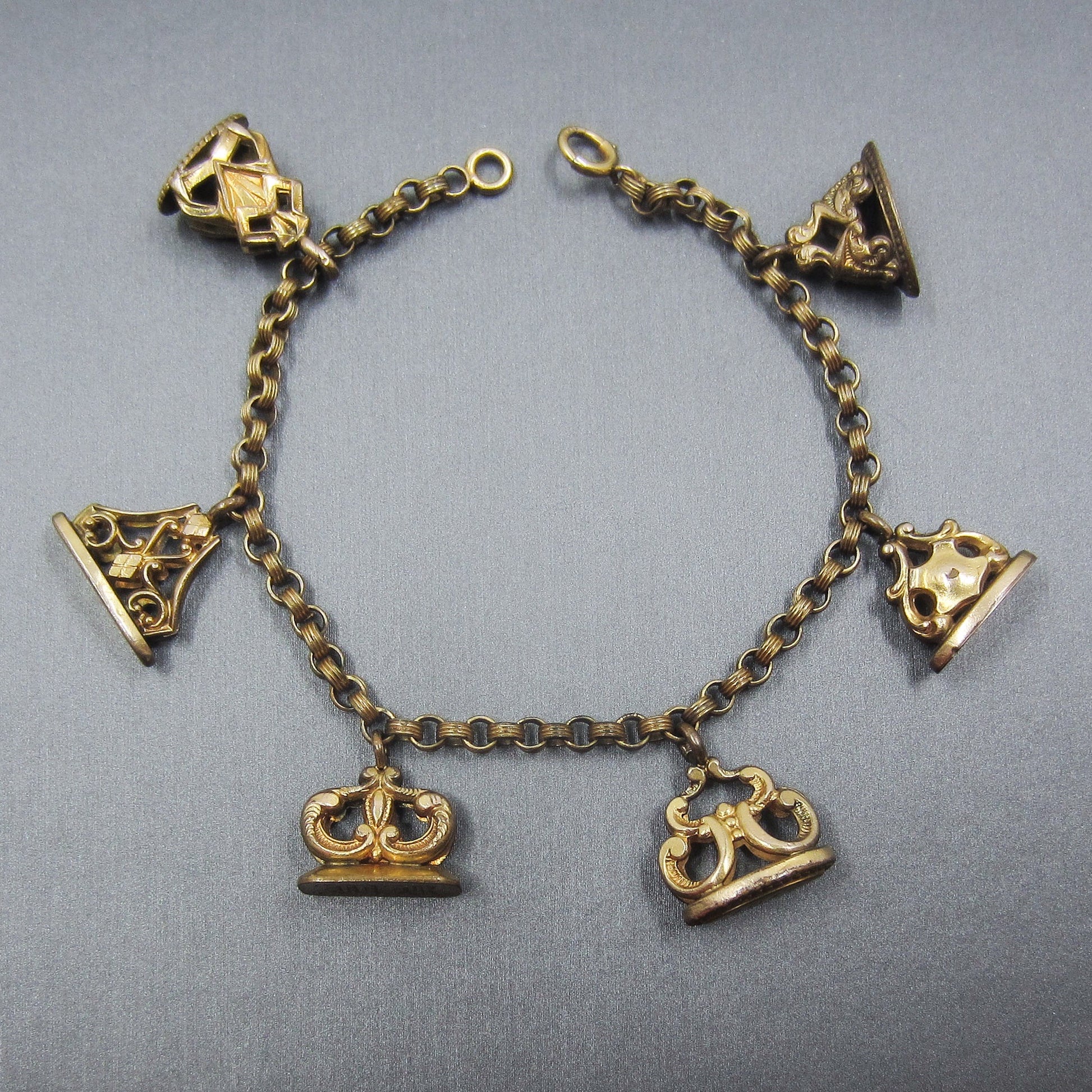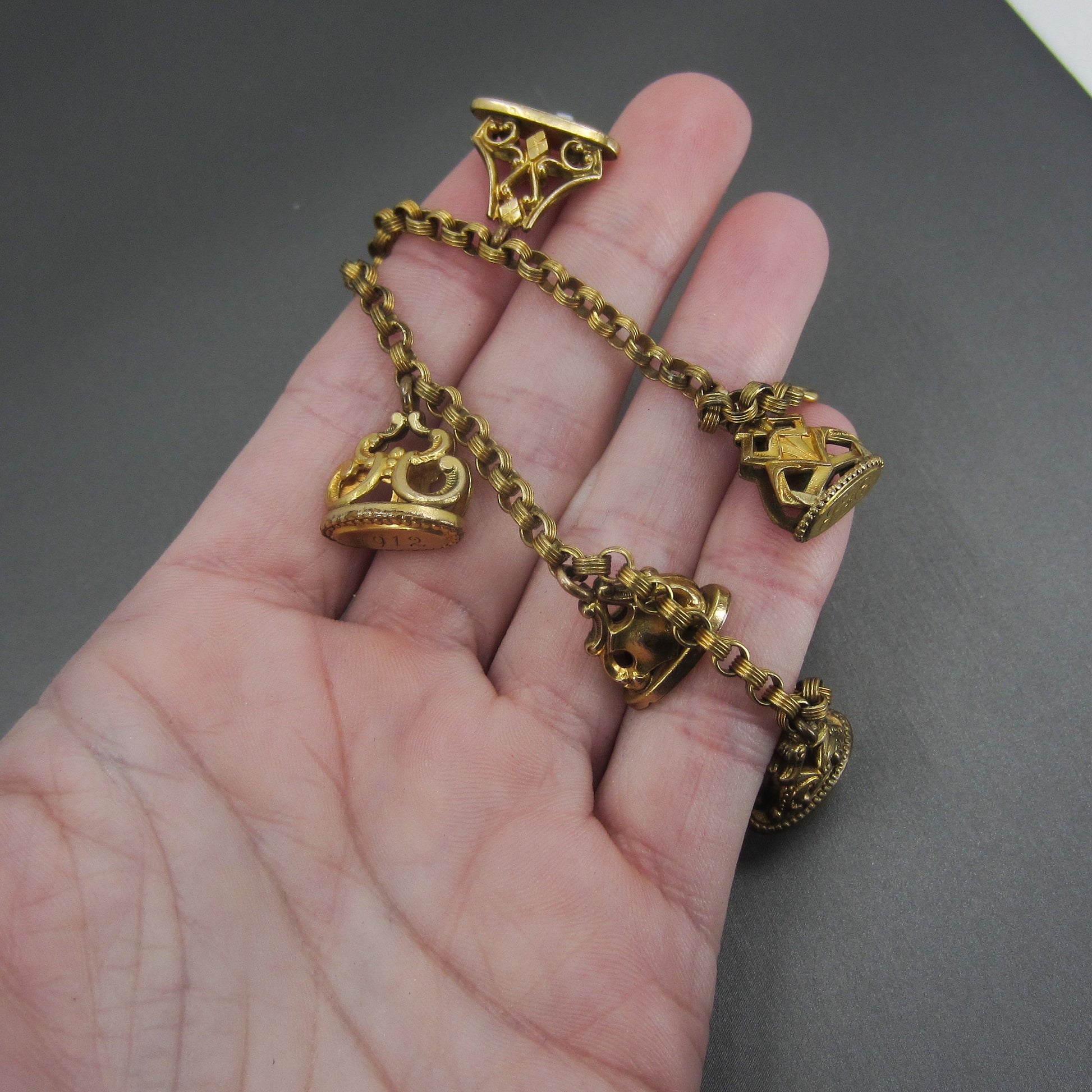 SOLD-Antique Seal Fob Charm Bracelet Gold-Filled c. 1900