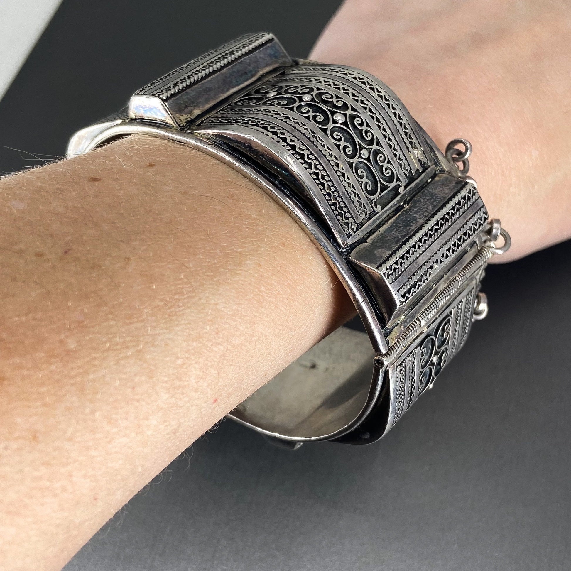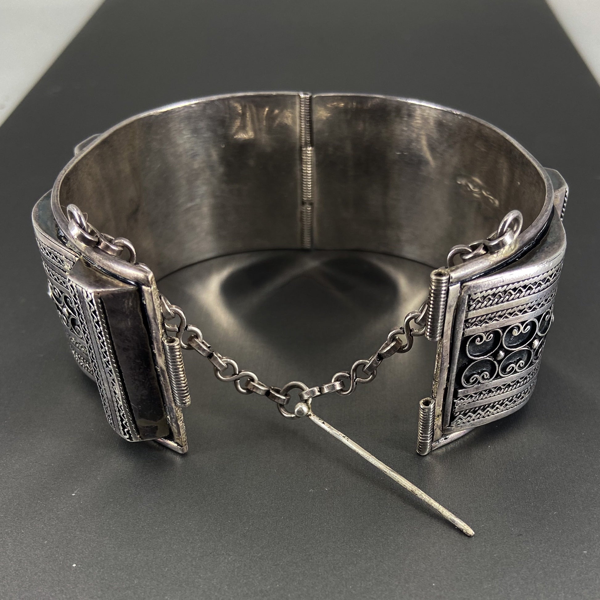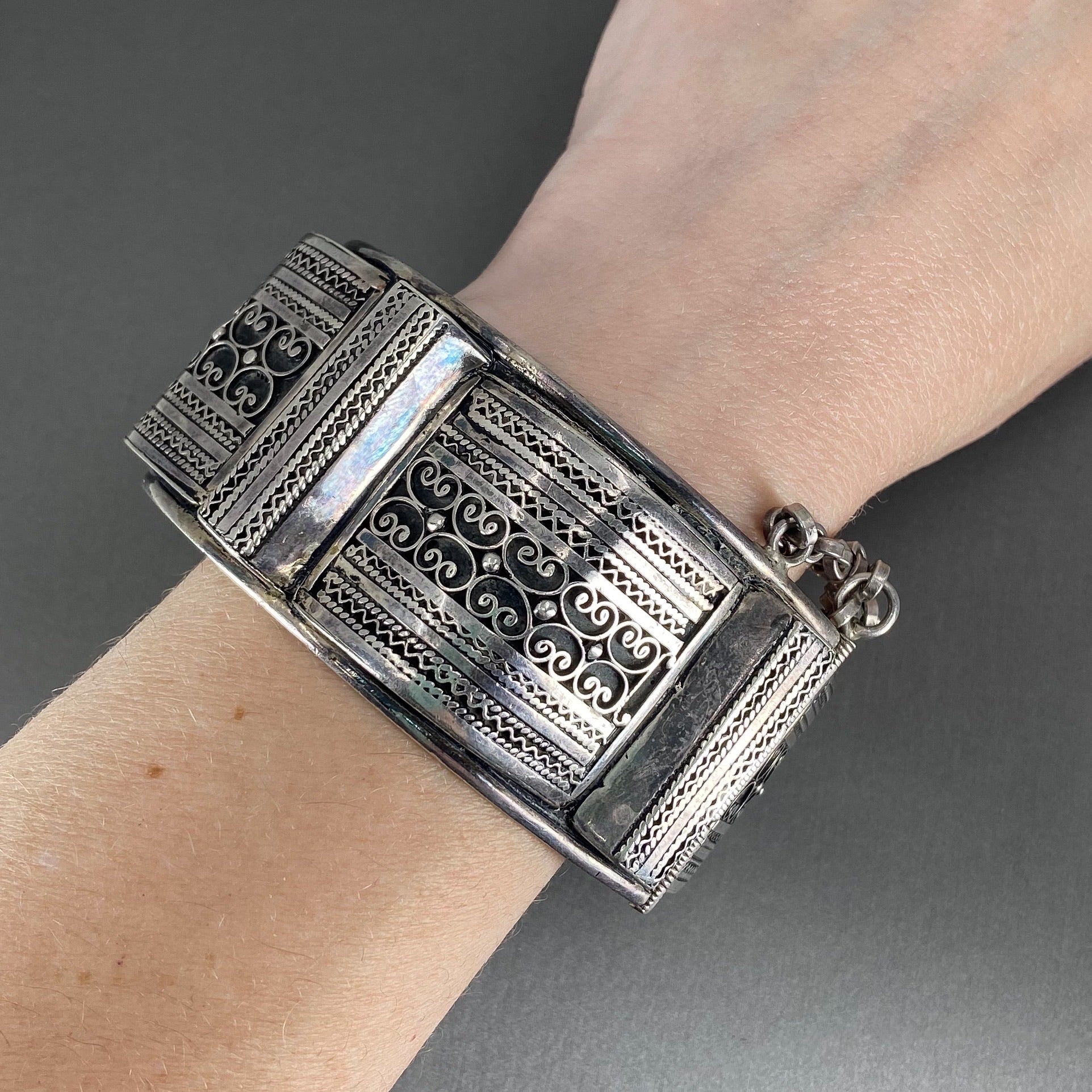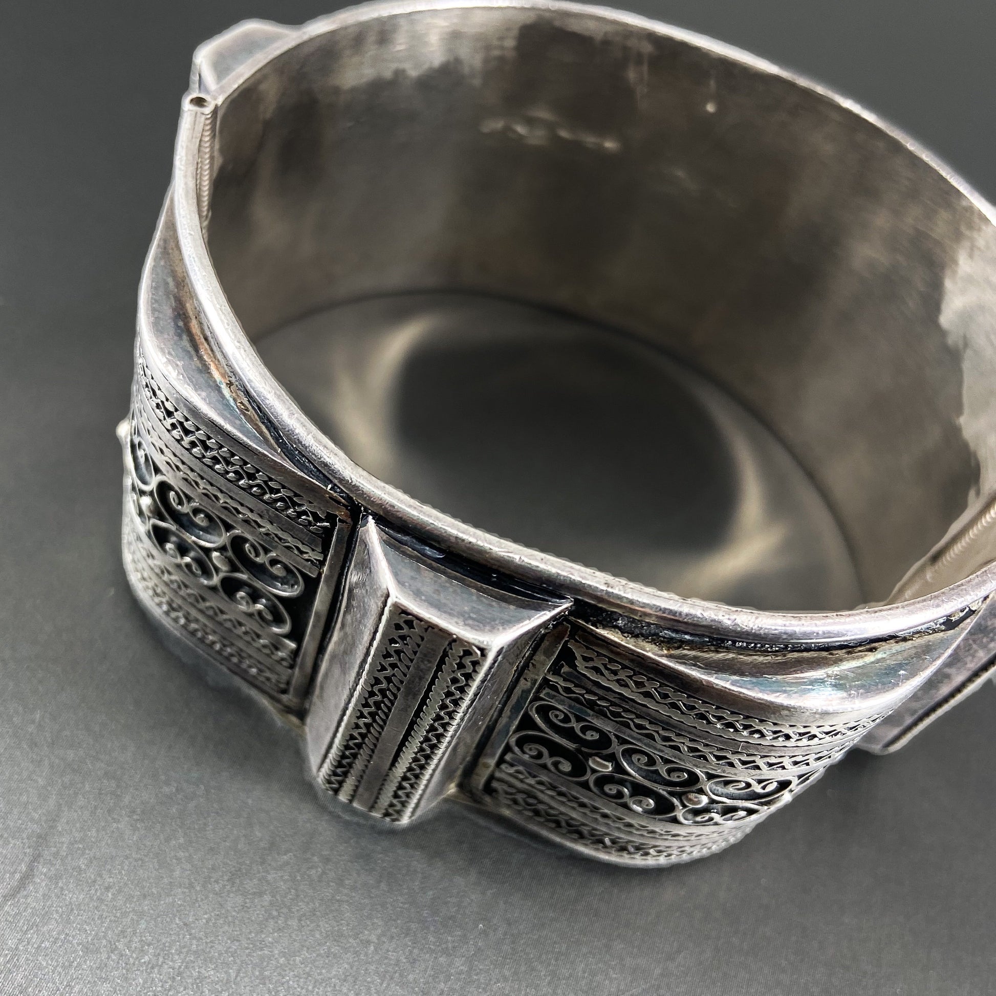 SOLD--Antique Wide Ornate Hinged Bangle Sterling c. 1930