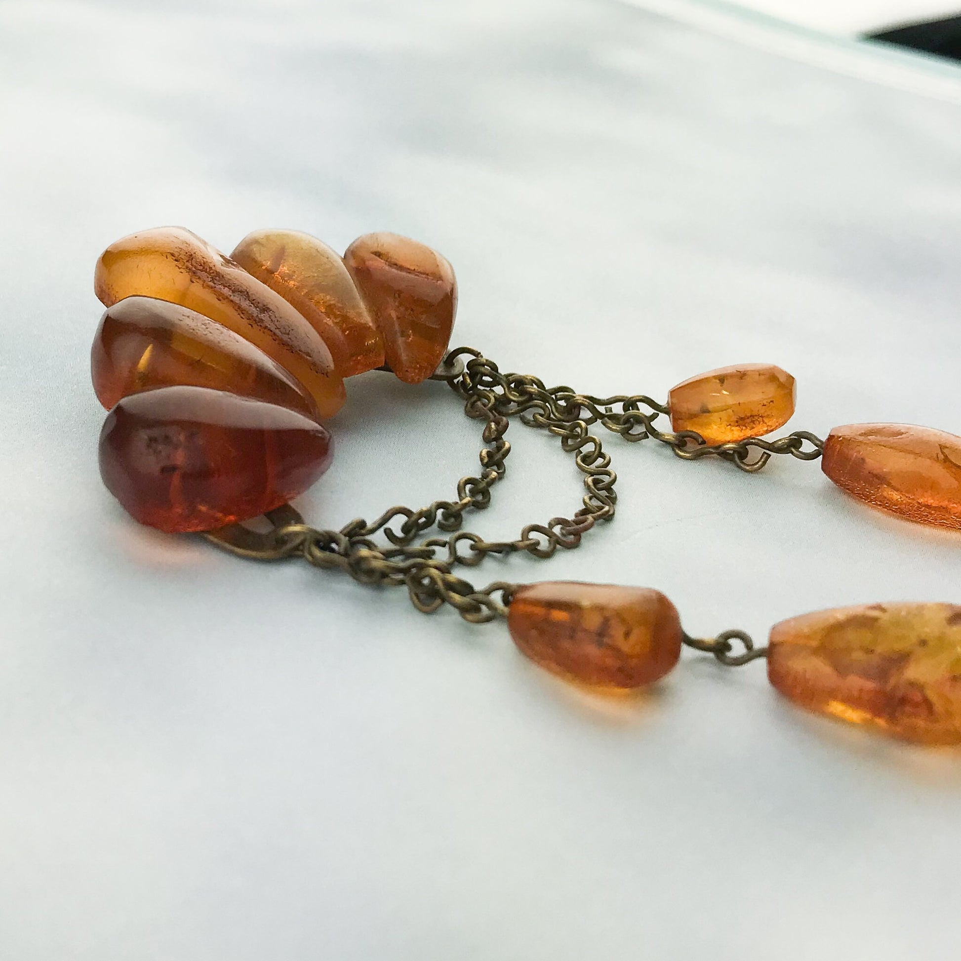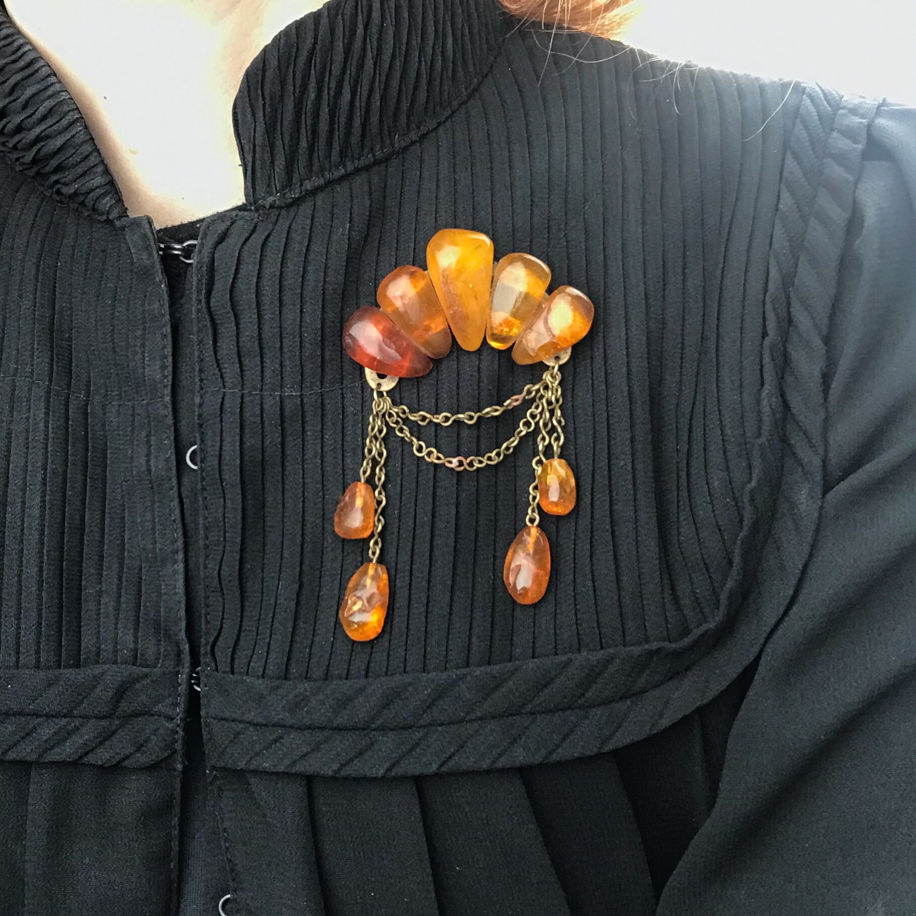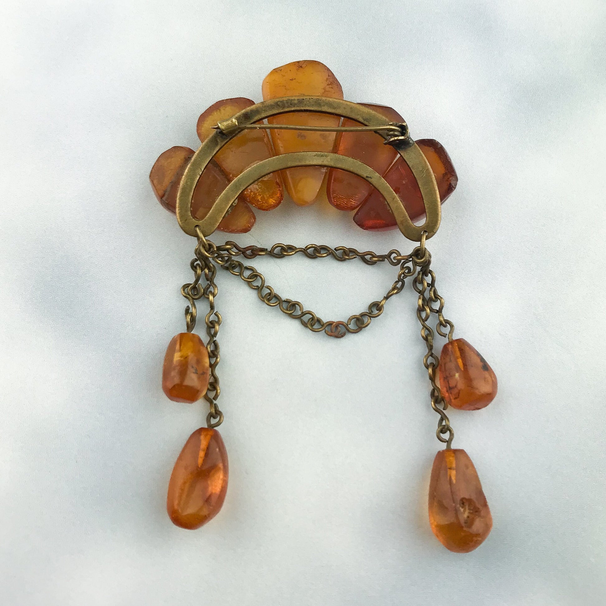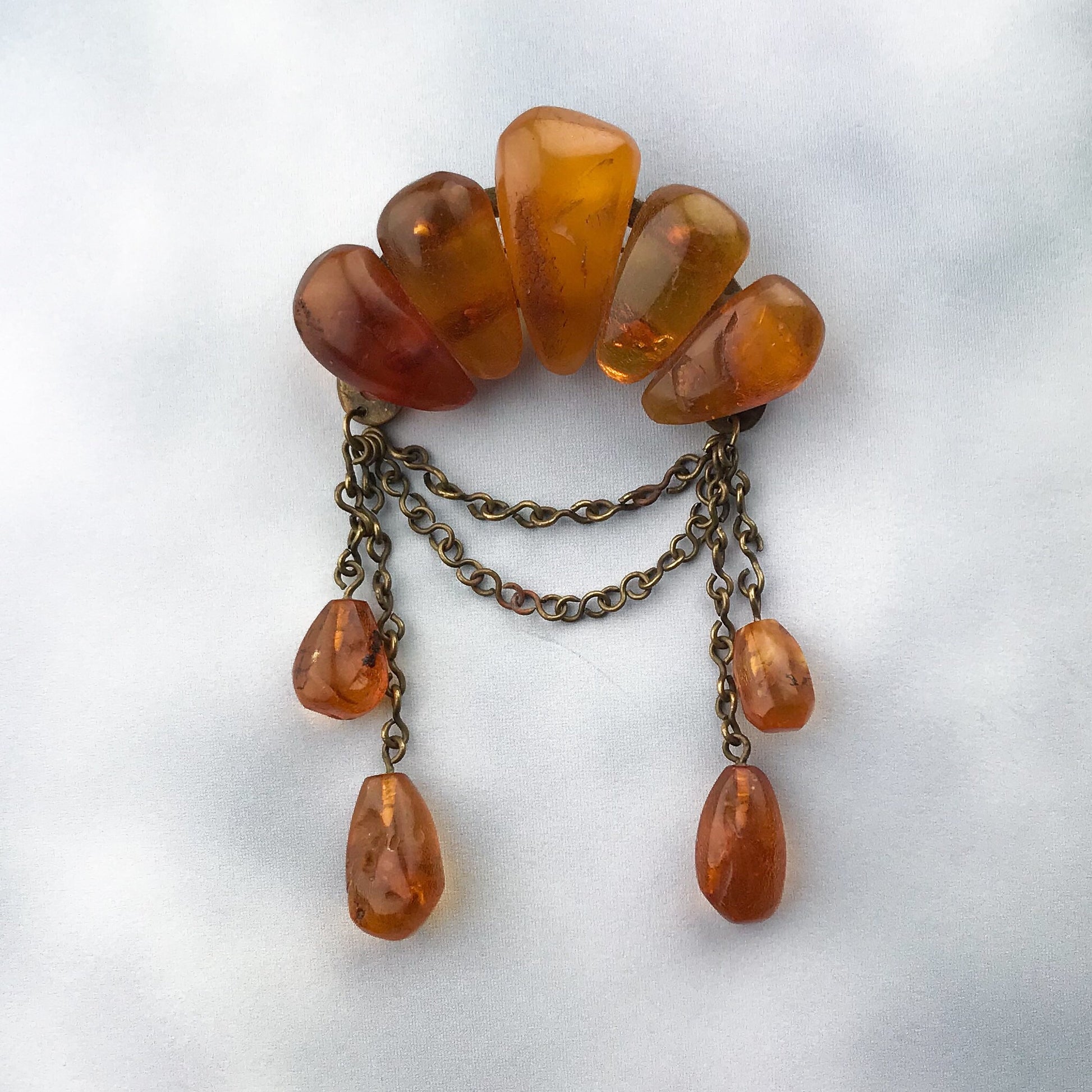 SOLD--Art Deco Amber Drop Brooch Brass c. 1930