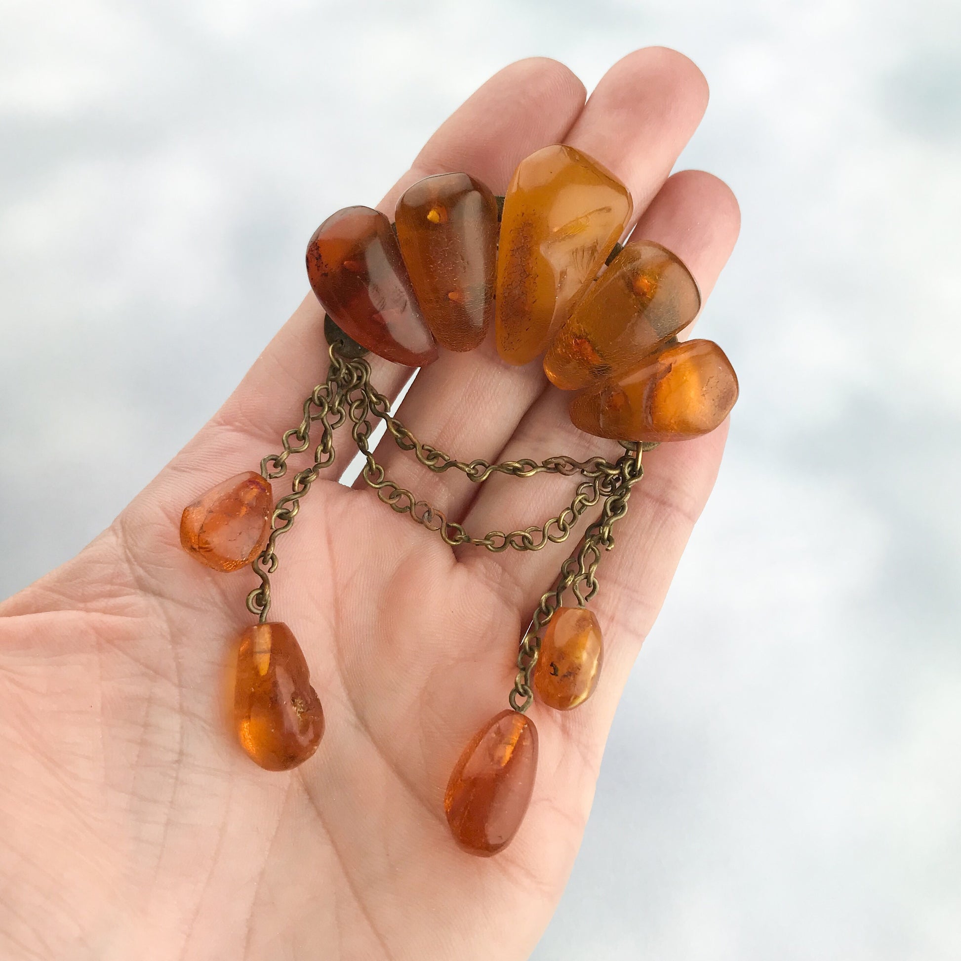 Fabulous and large Baltic amber brooch in brass circa 1930's.