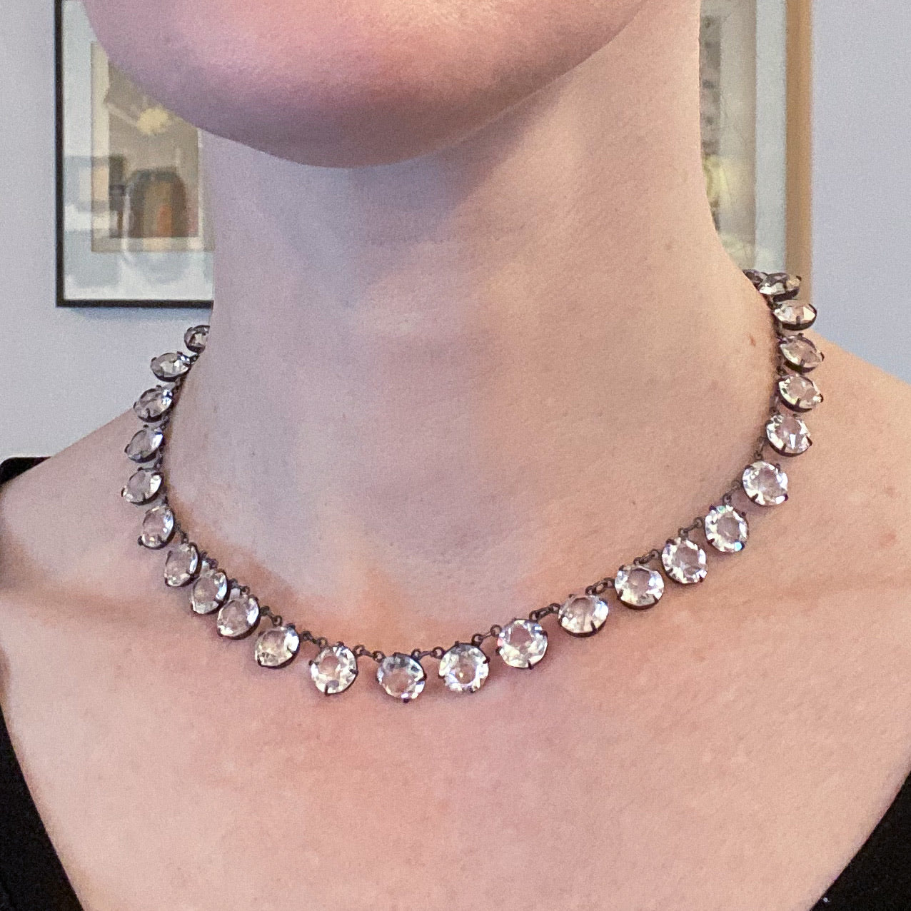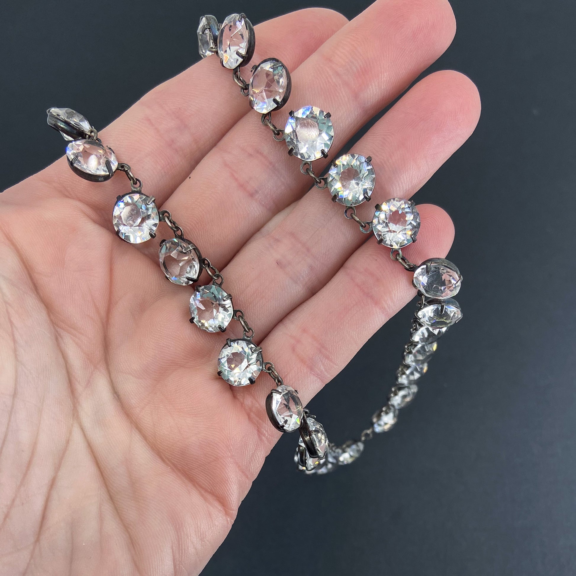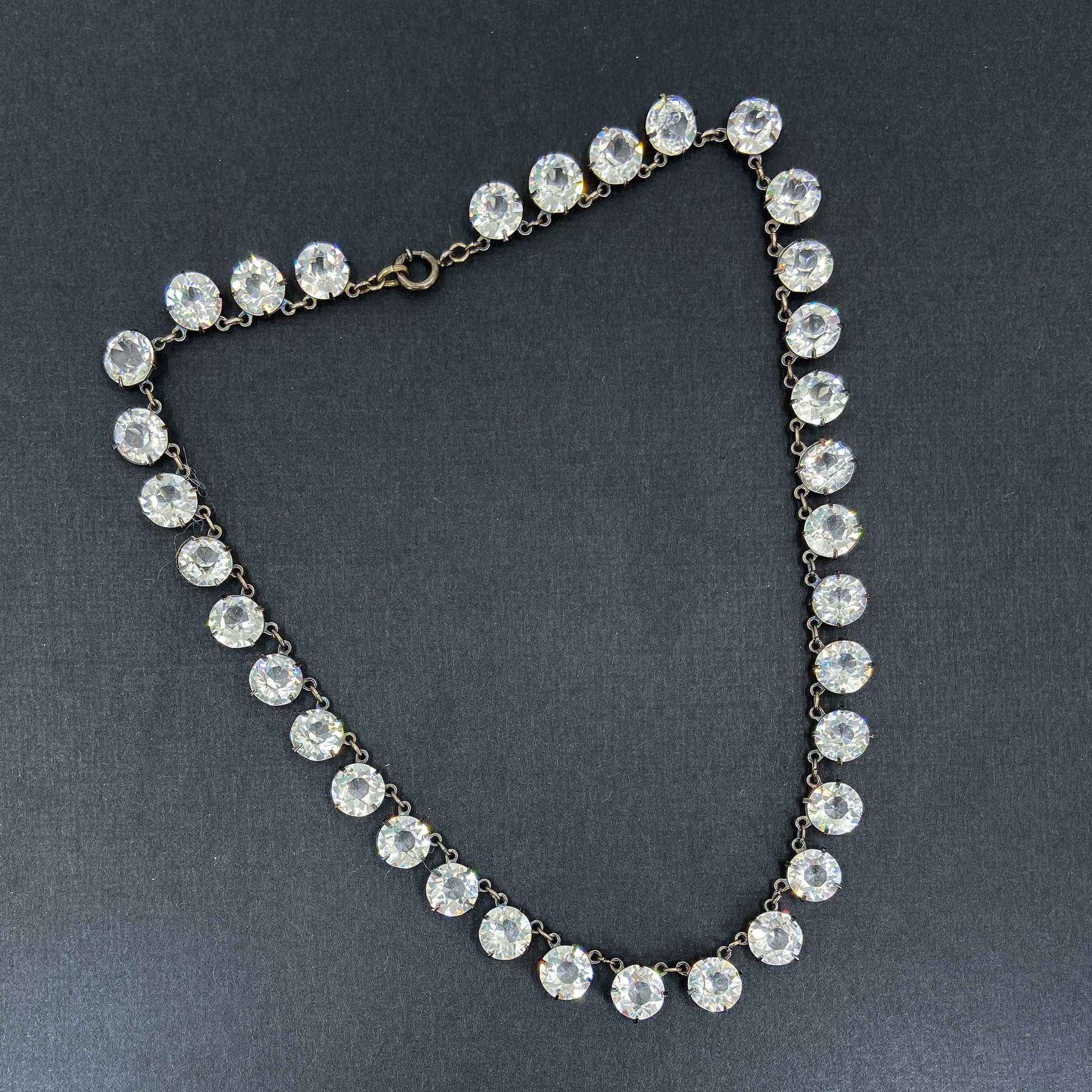 Art Deco Crystal Collar Necklace Sterling c. 1939