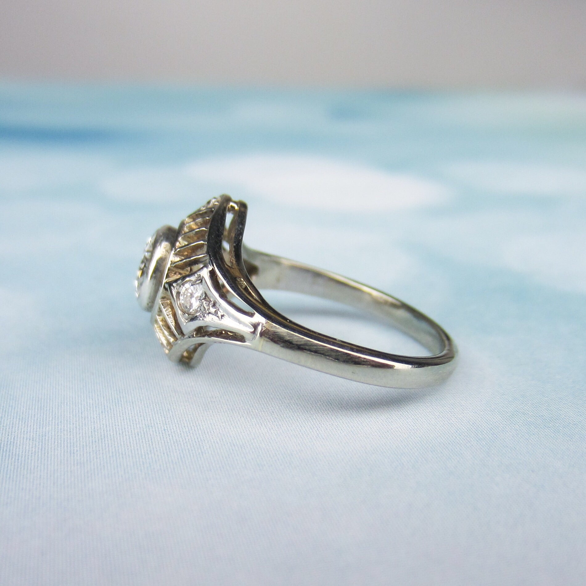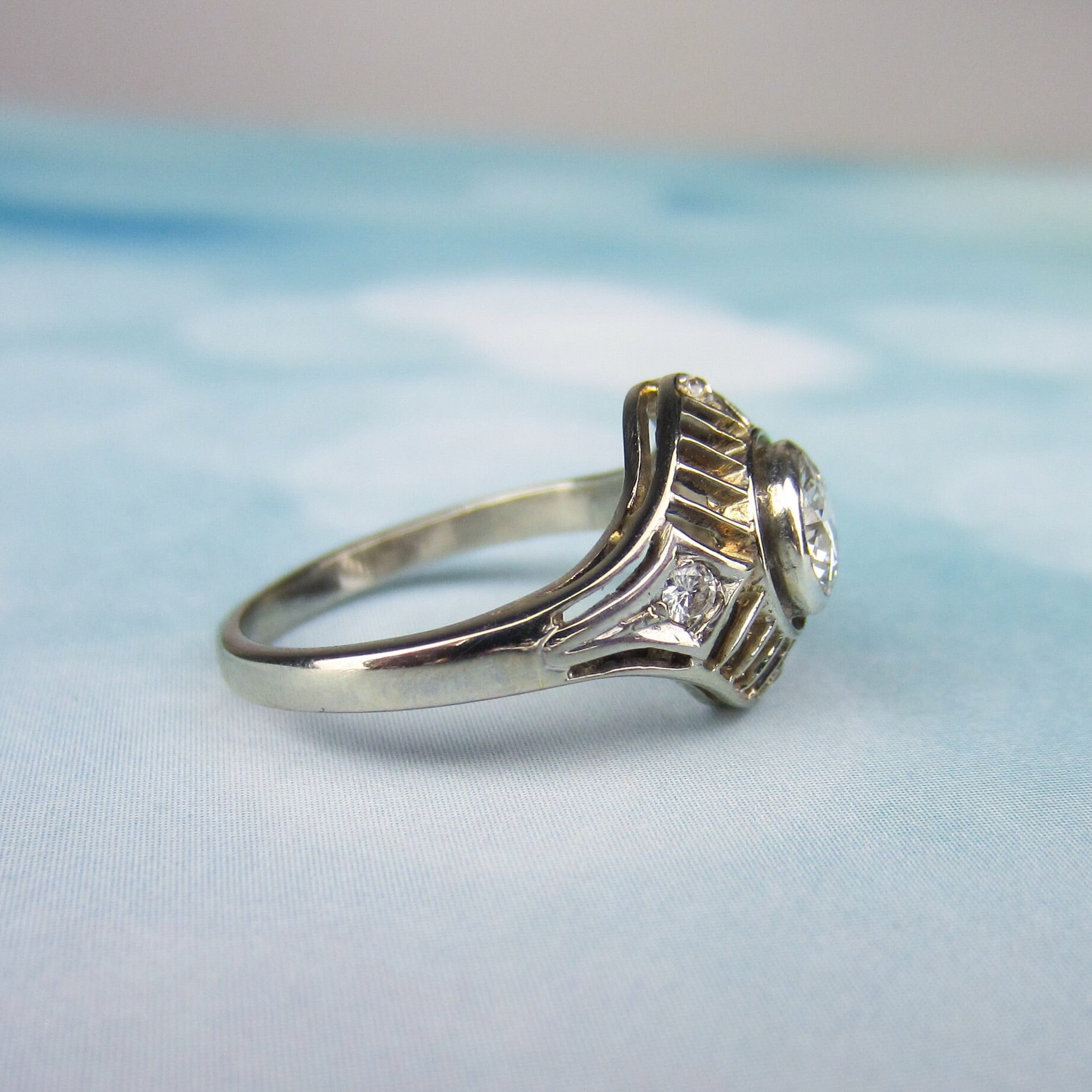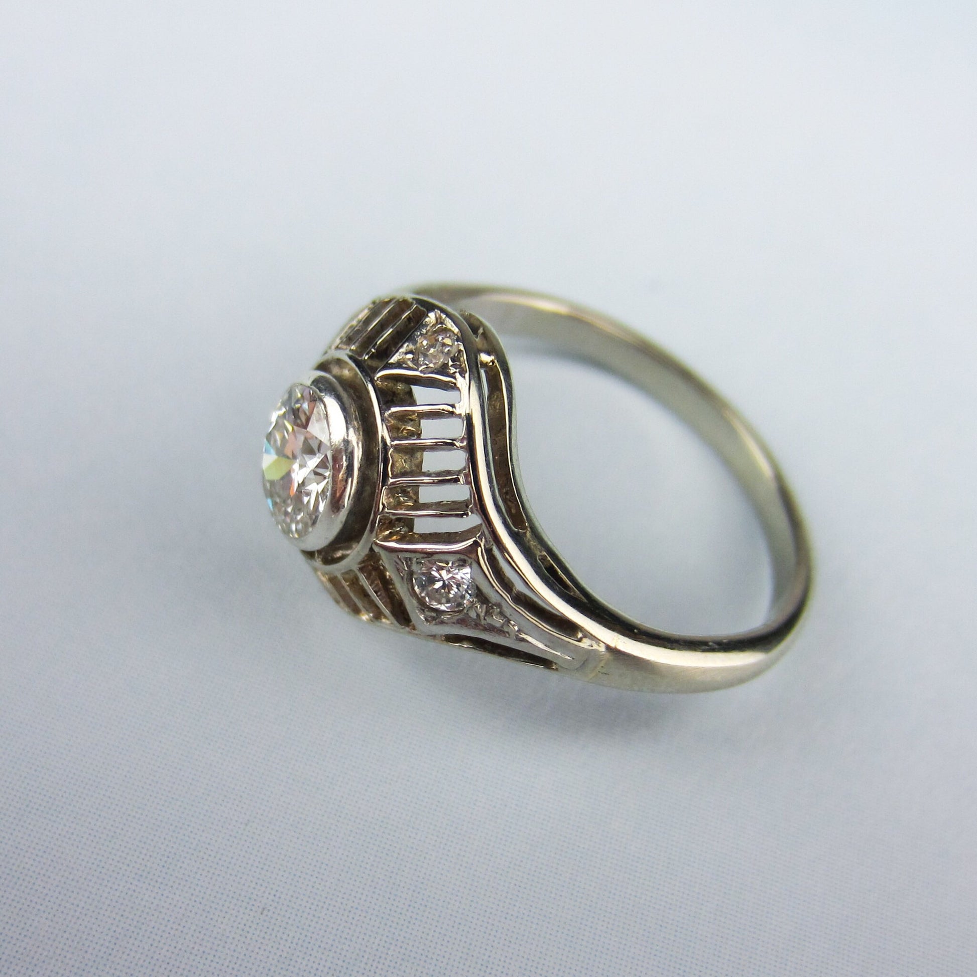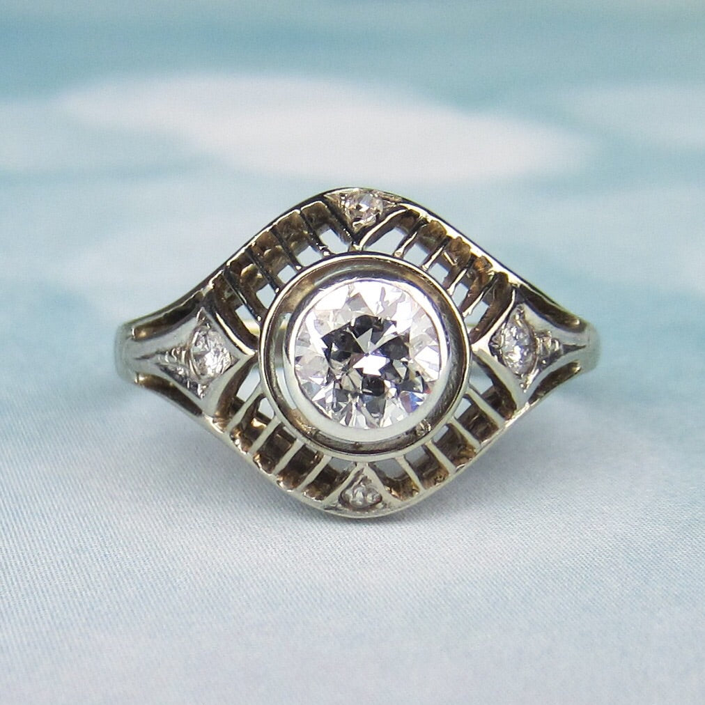 SOLD--Art Deco Diamond .60ct Filigree Engagement Ring 14k, Poland c. 1930