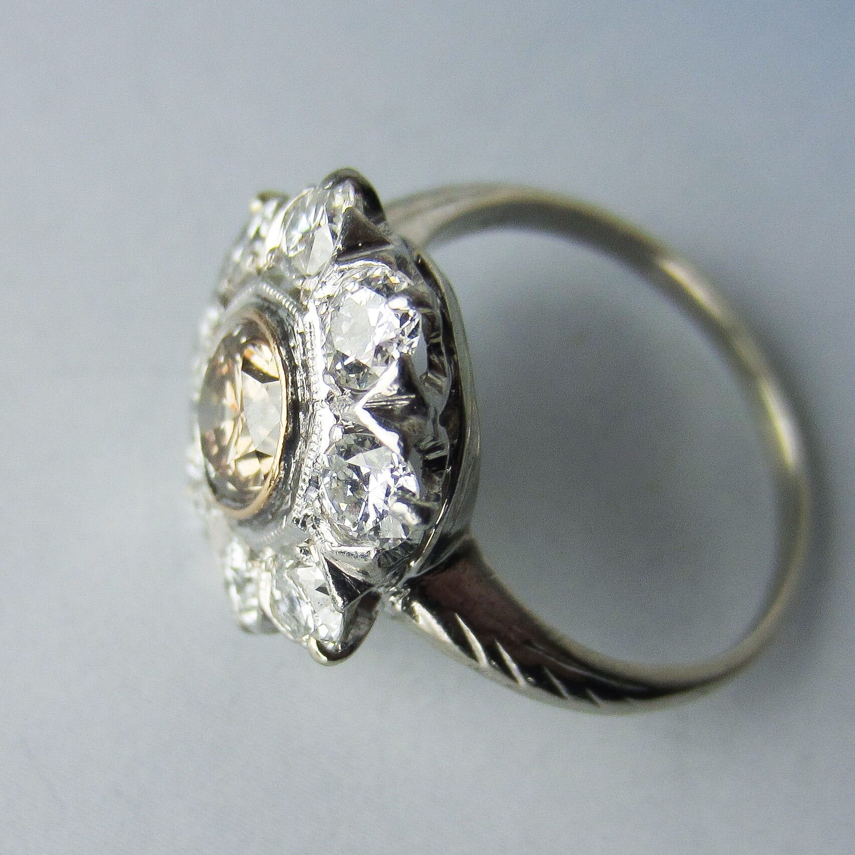 SOLD--Art Deco Old Cut Diamond 1.85ctw Cluster Ring 14k c. 1940