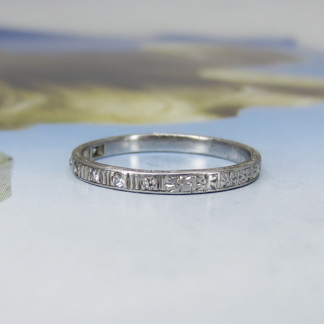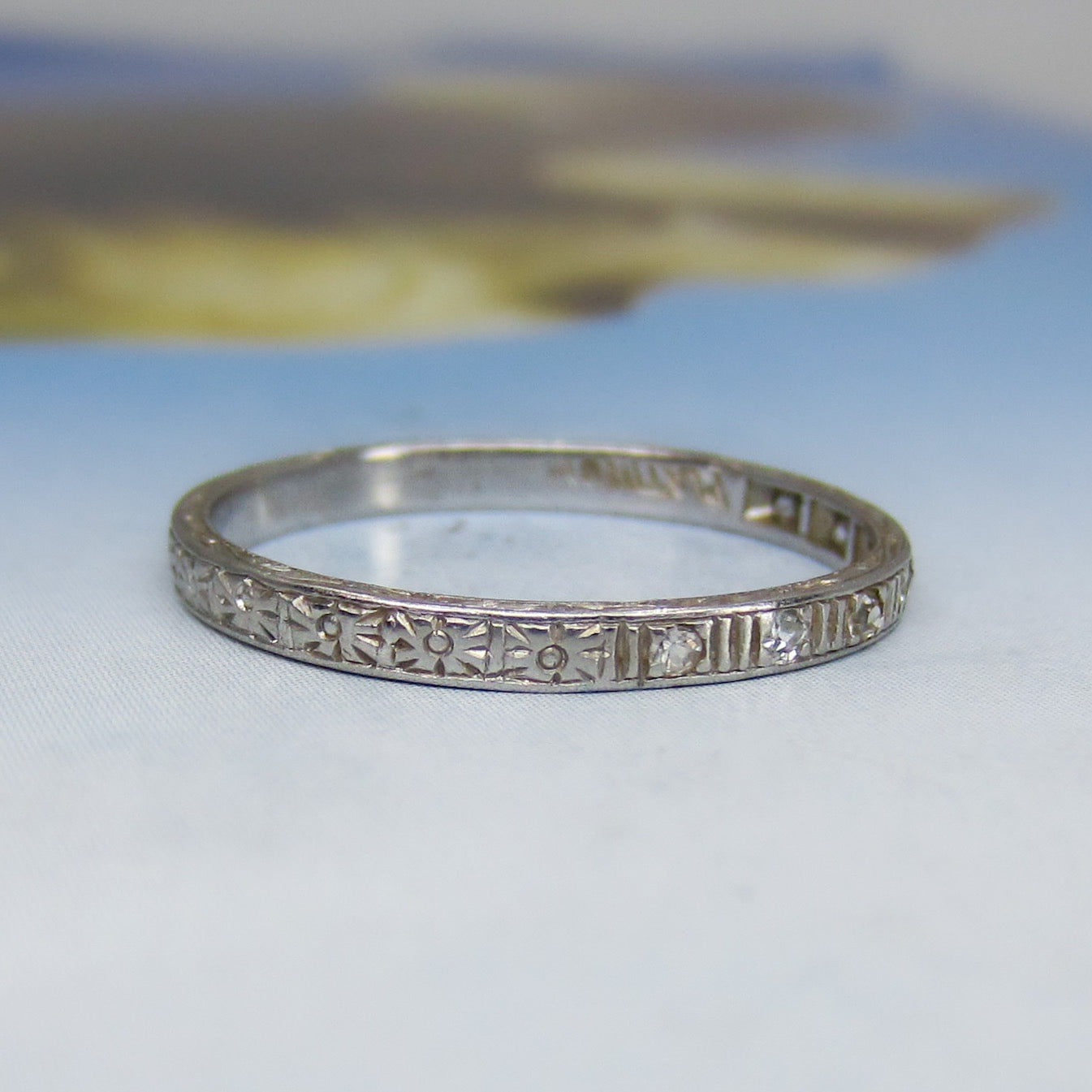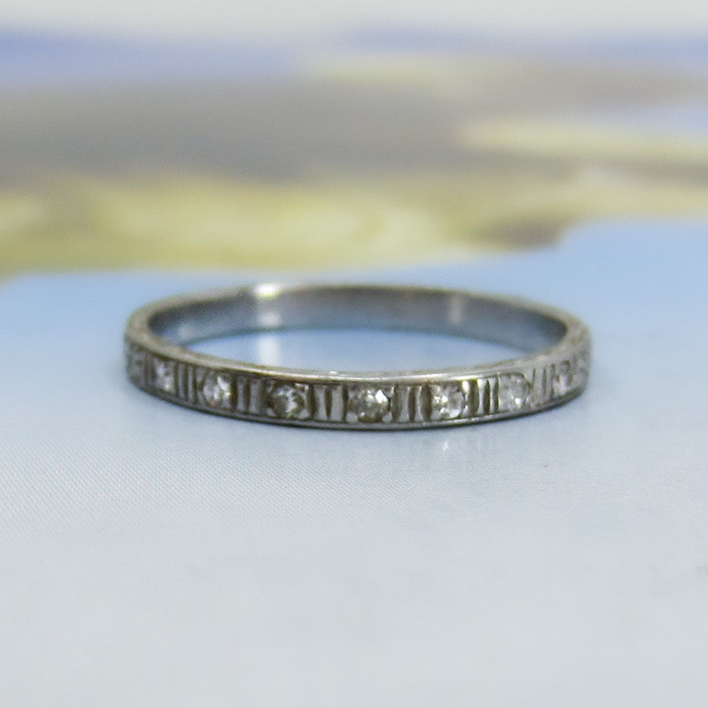 SOLD-Art Deco Diamond Engraved Band Platinum c. 1920
