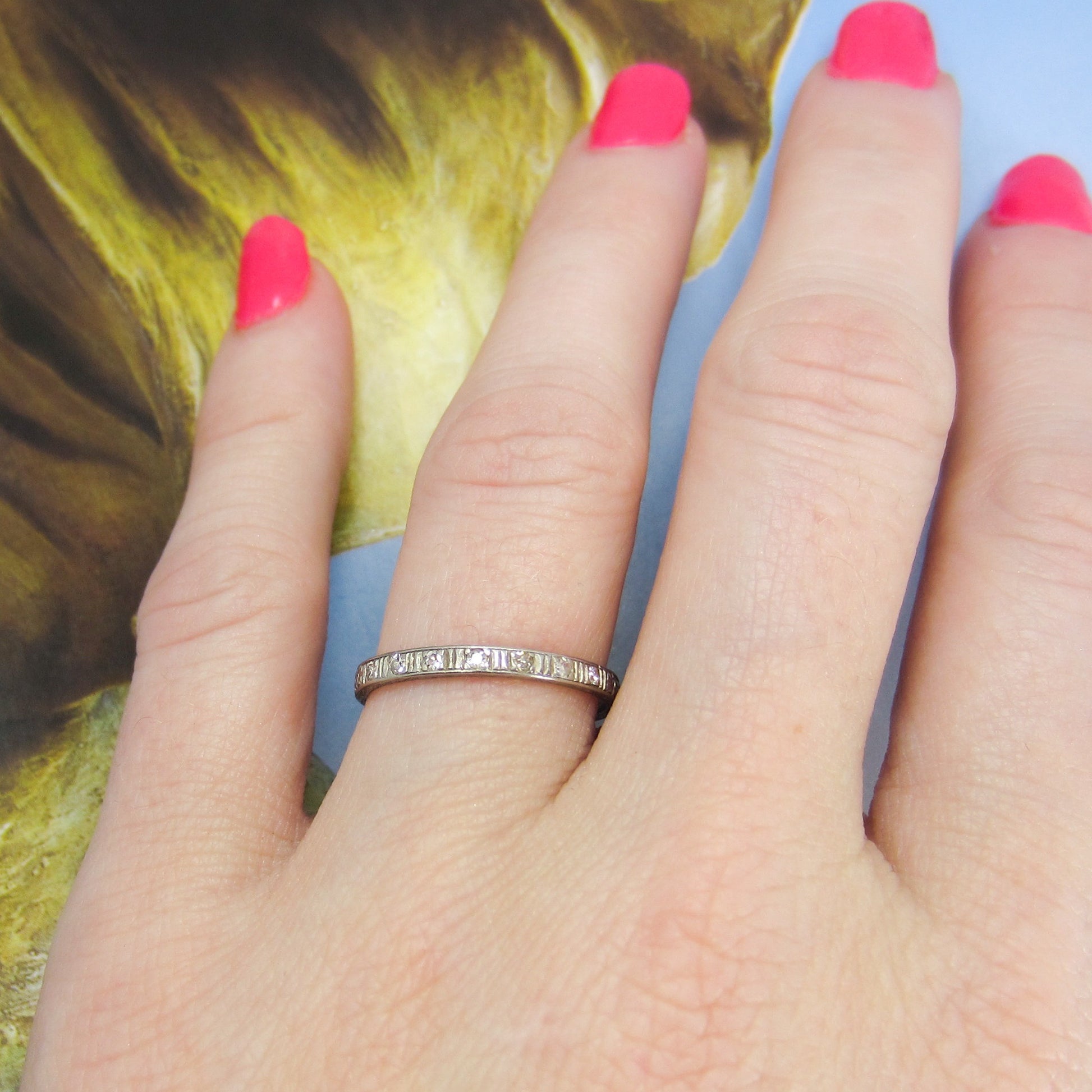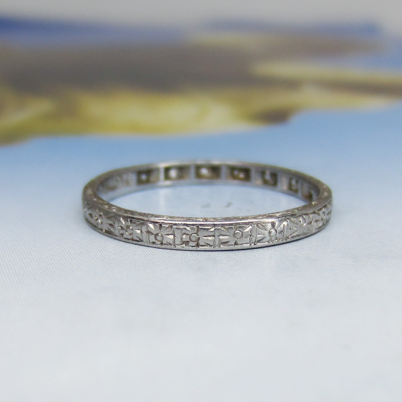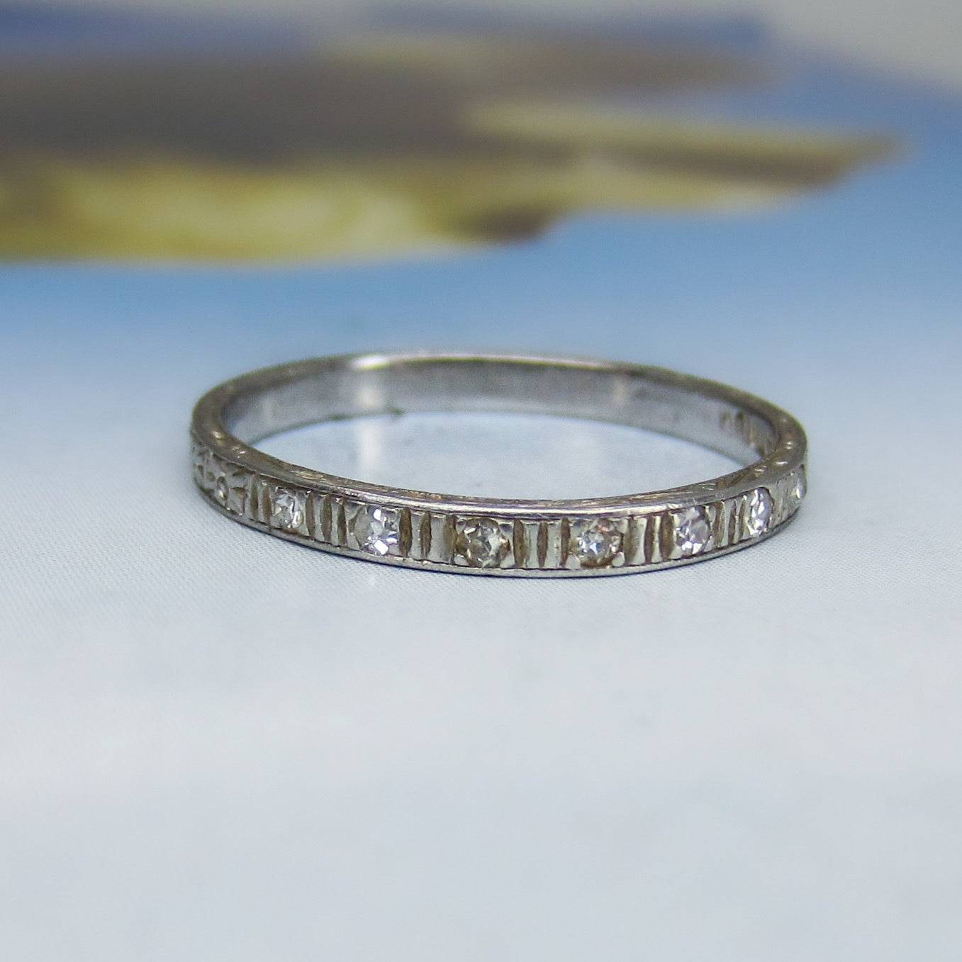 SOLD-Art Deco Diamond Engraved Band Platinum c. 1920