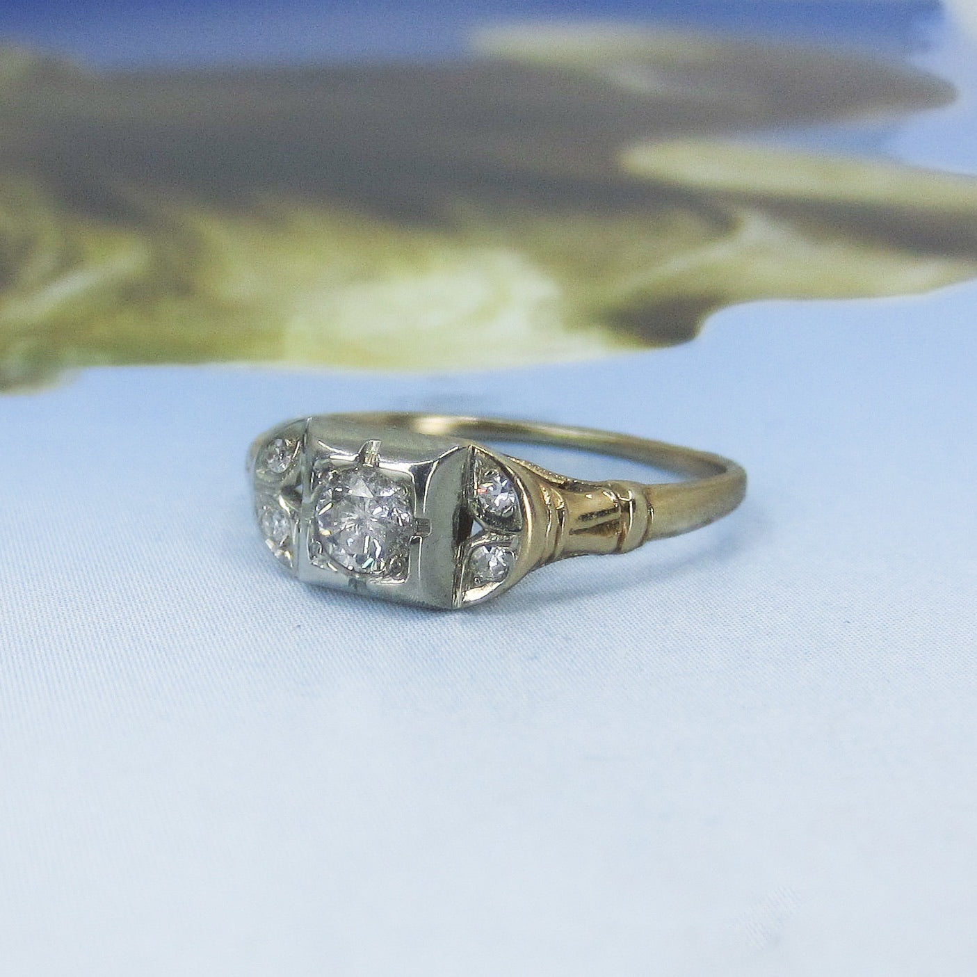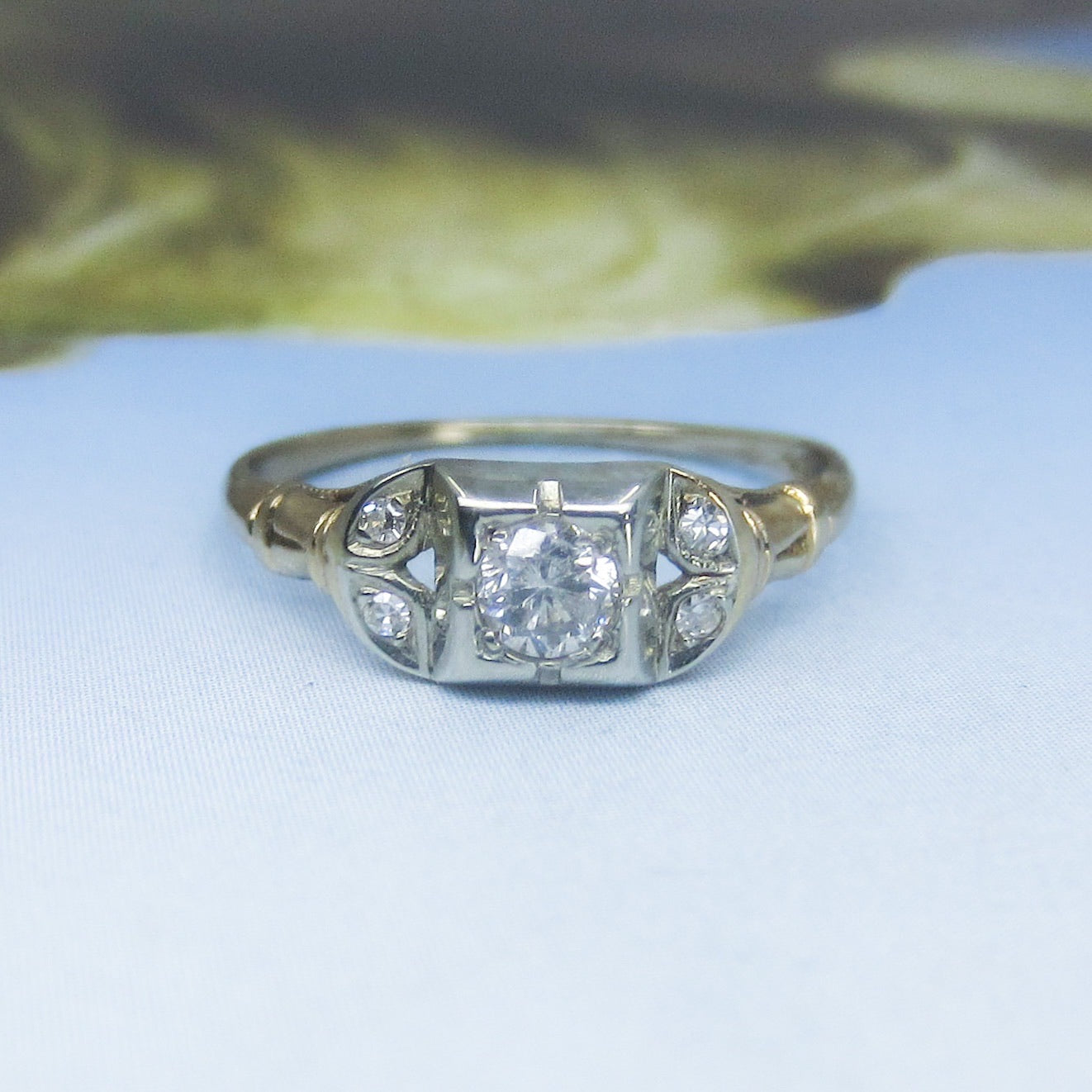 SOLD--Art Deco Diamond Ring 14k c. 1930