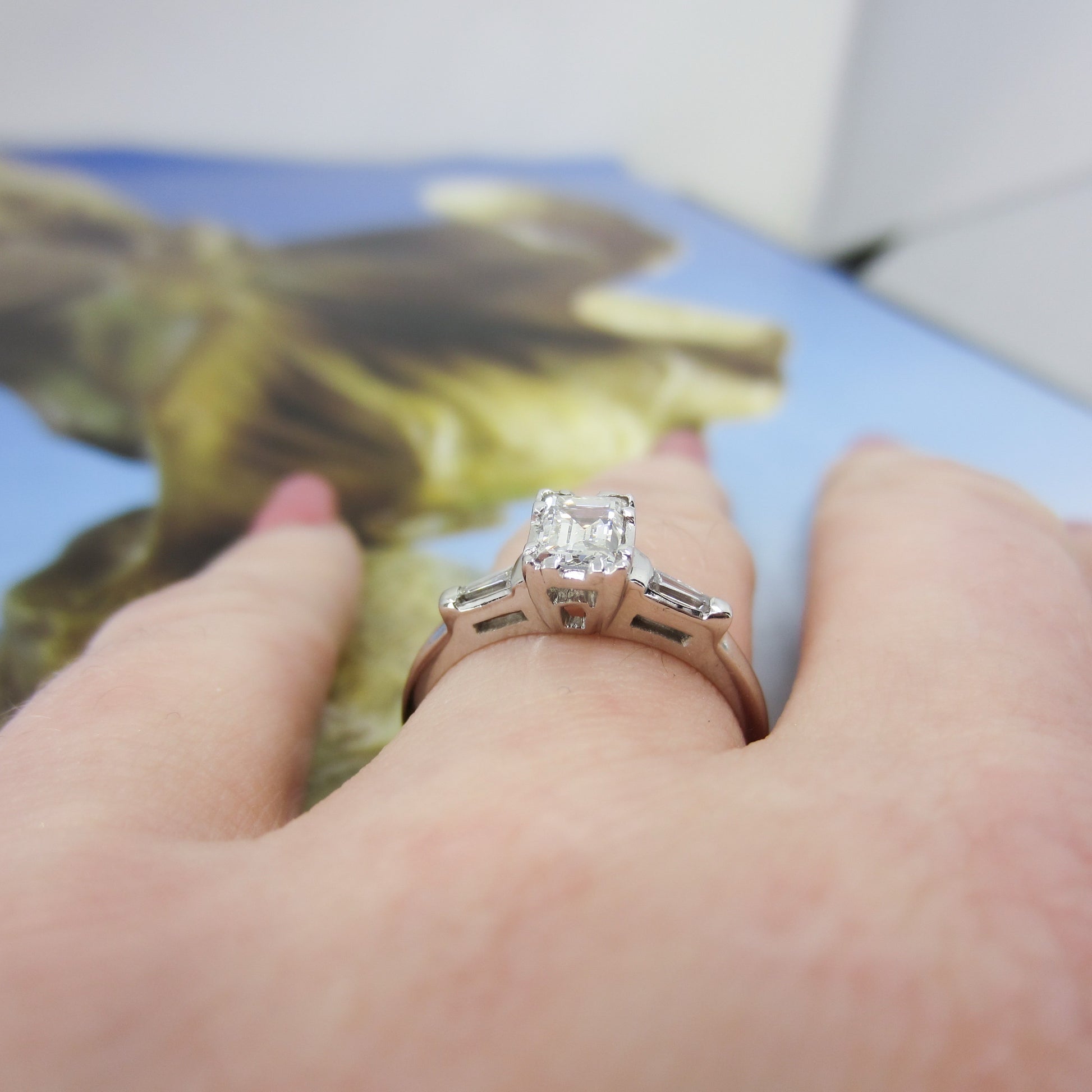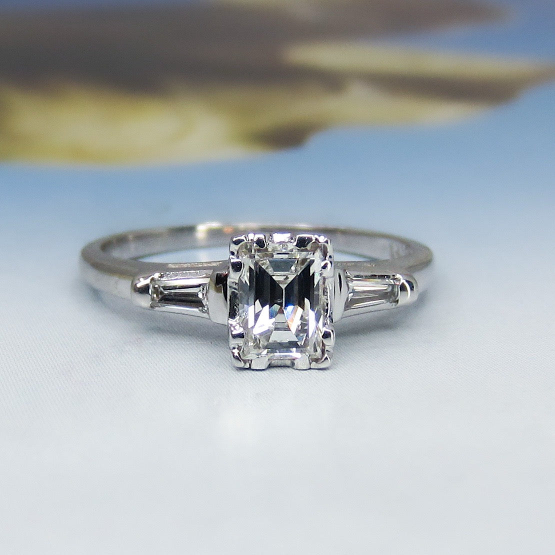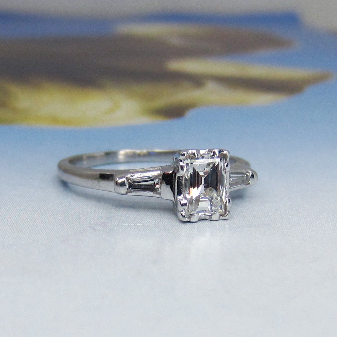 Art Deco Emerald Cut .40ct Diamond Engagement Ring 14k c. 1940