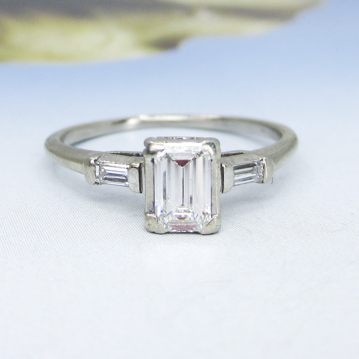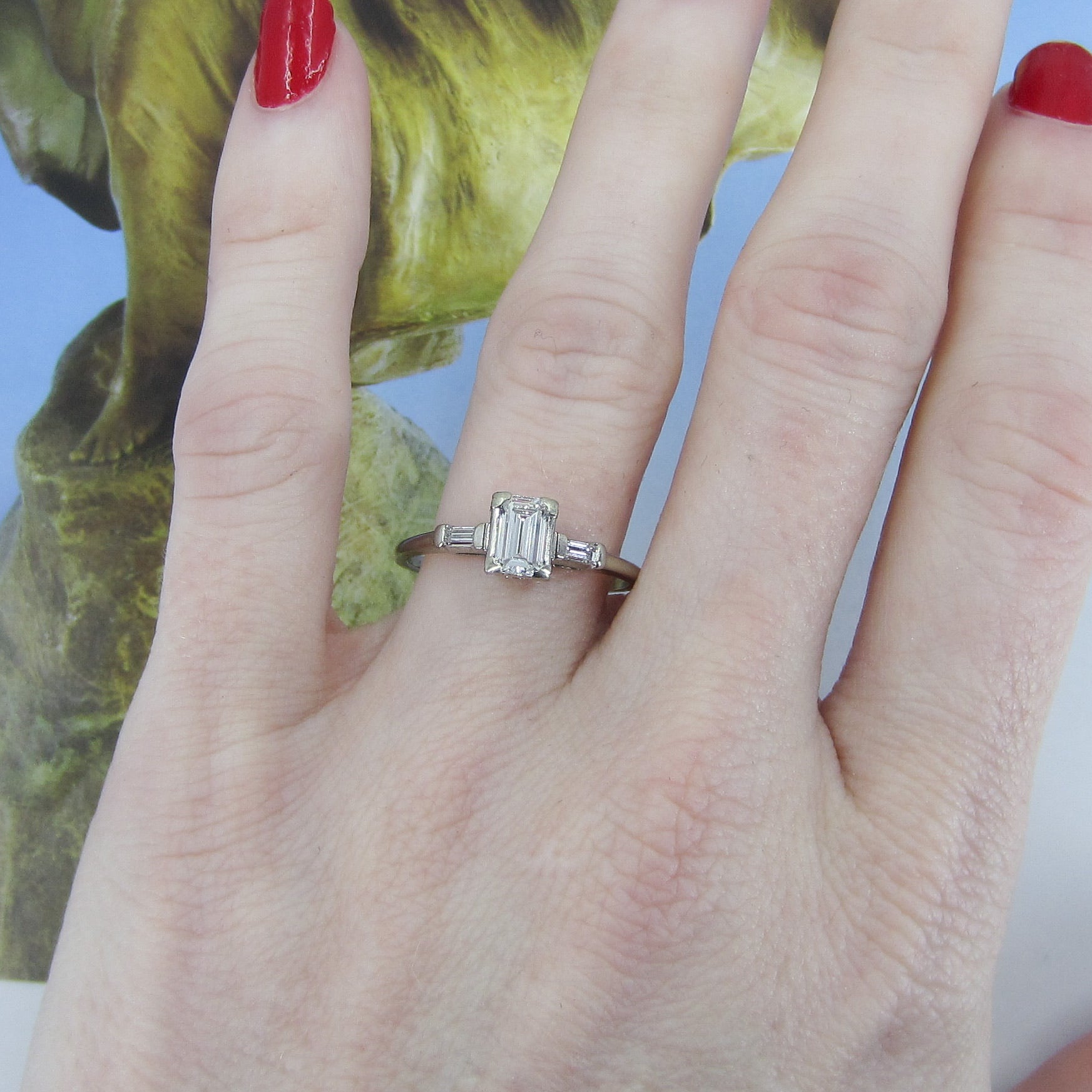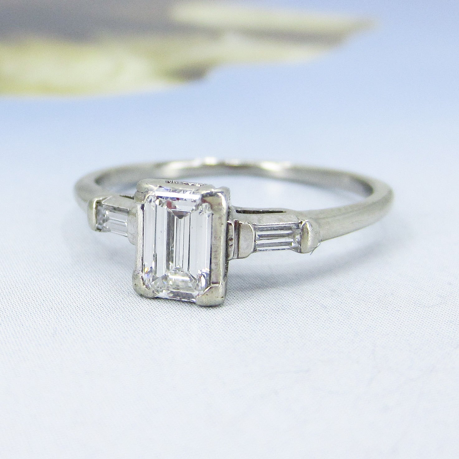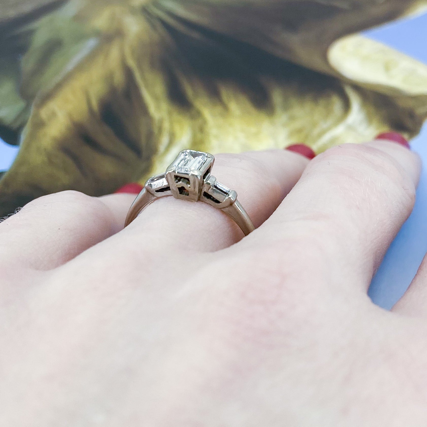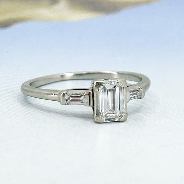 SOLD—Art Deco Emerald Cut Diamond .56ct Ring 14k c. 1940