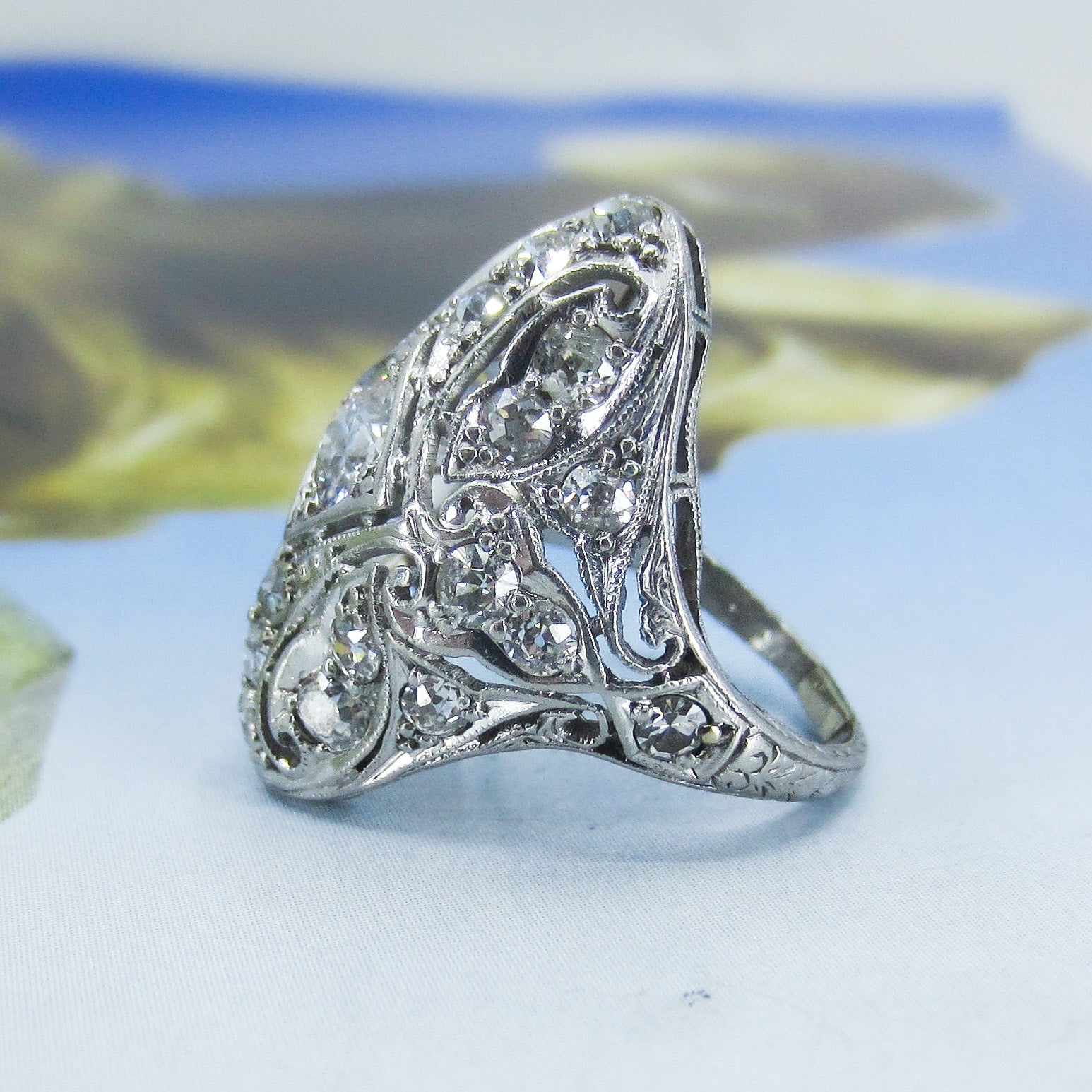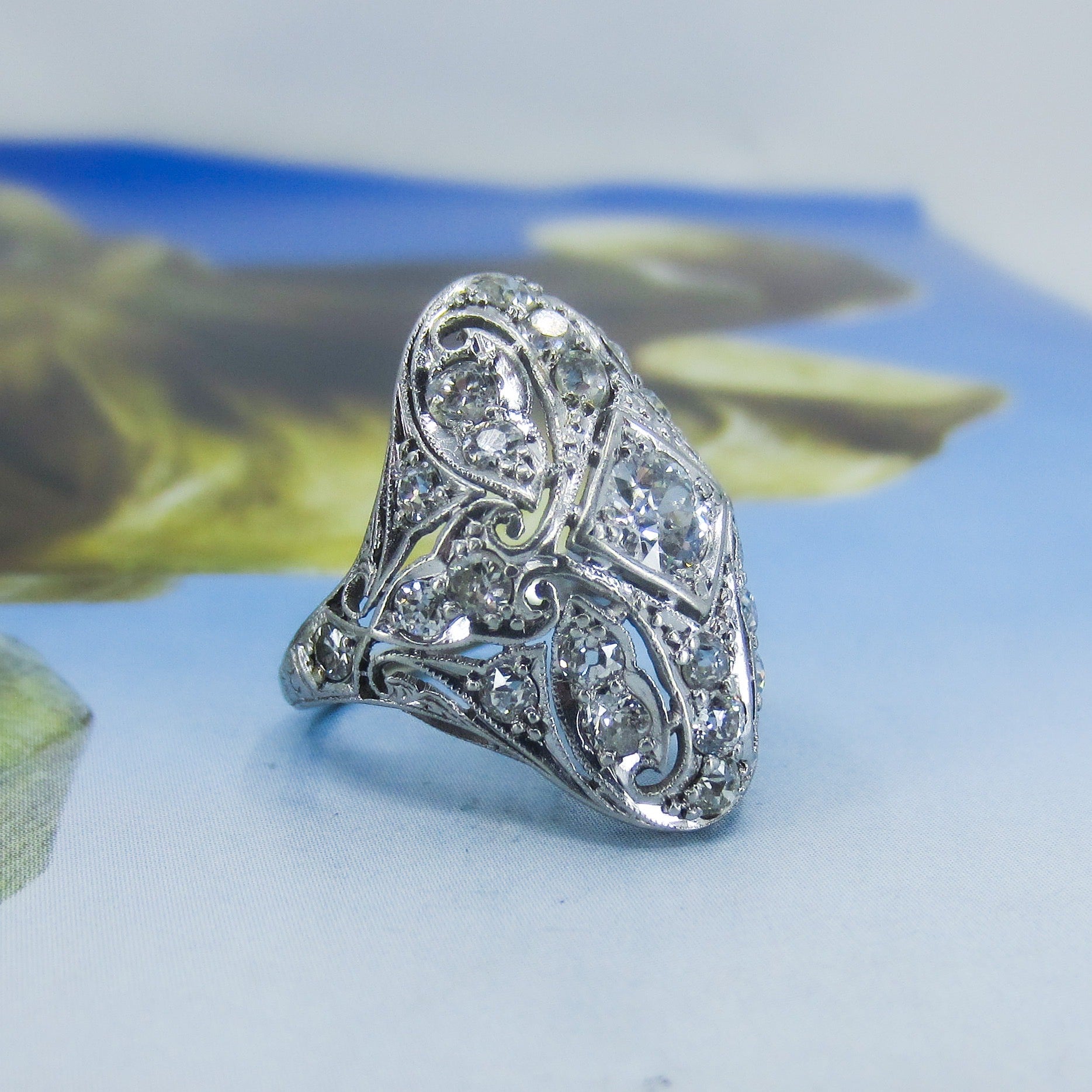 Art Deco Exquisite Diamond Dinner Ring Platinum c. 1920