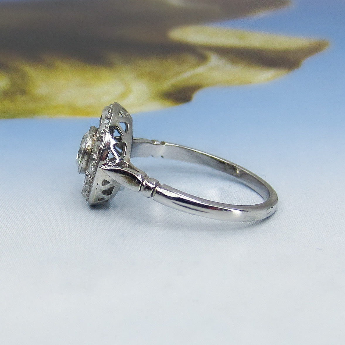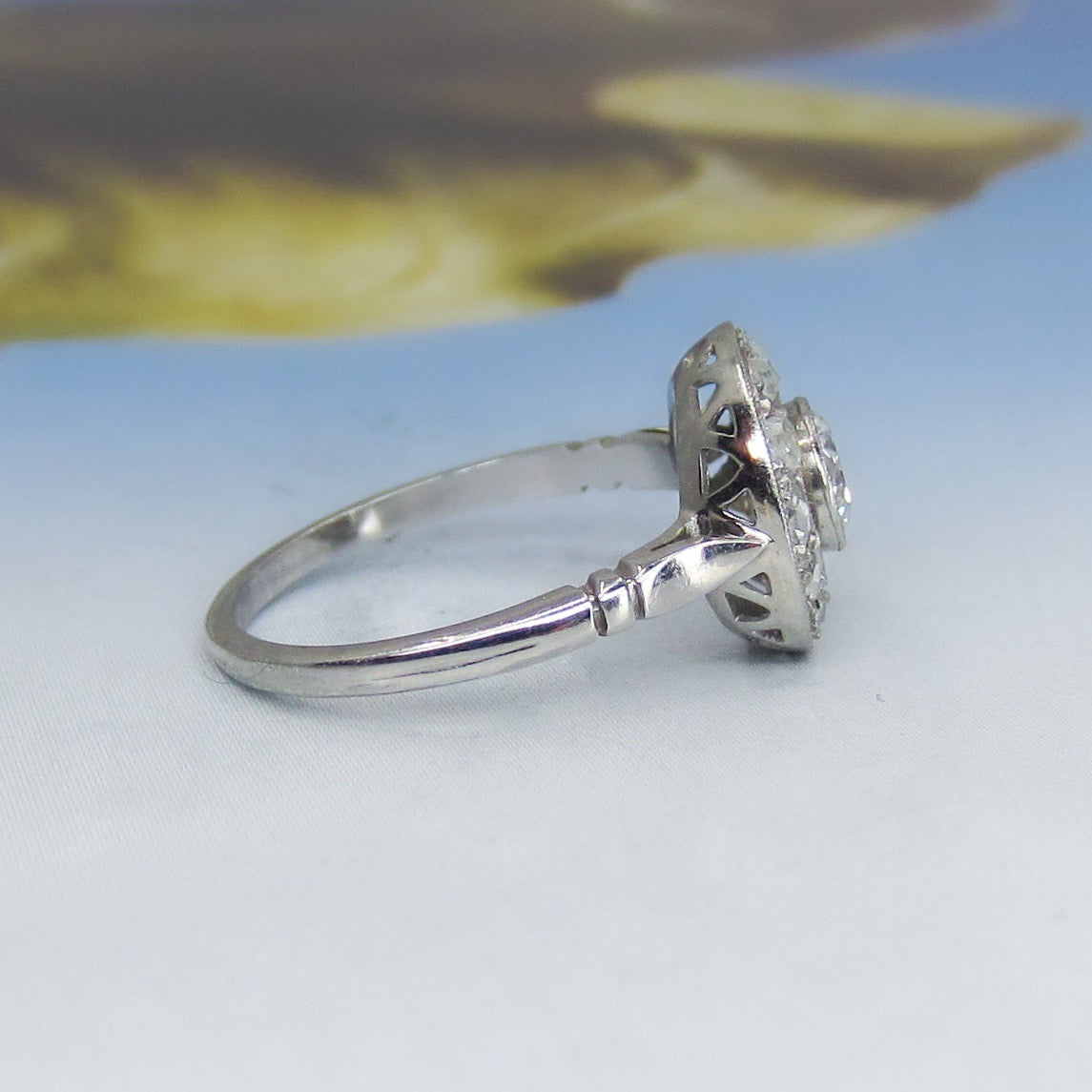SOLD--Art Deco French Old European and Rose Cut Diamond Ring 18k c. 1930