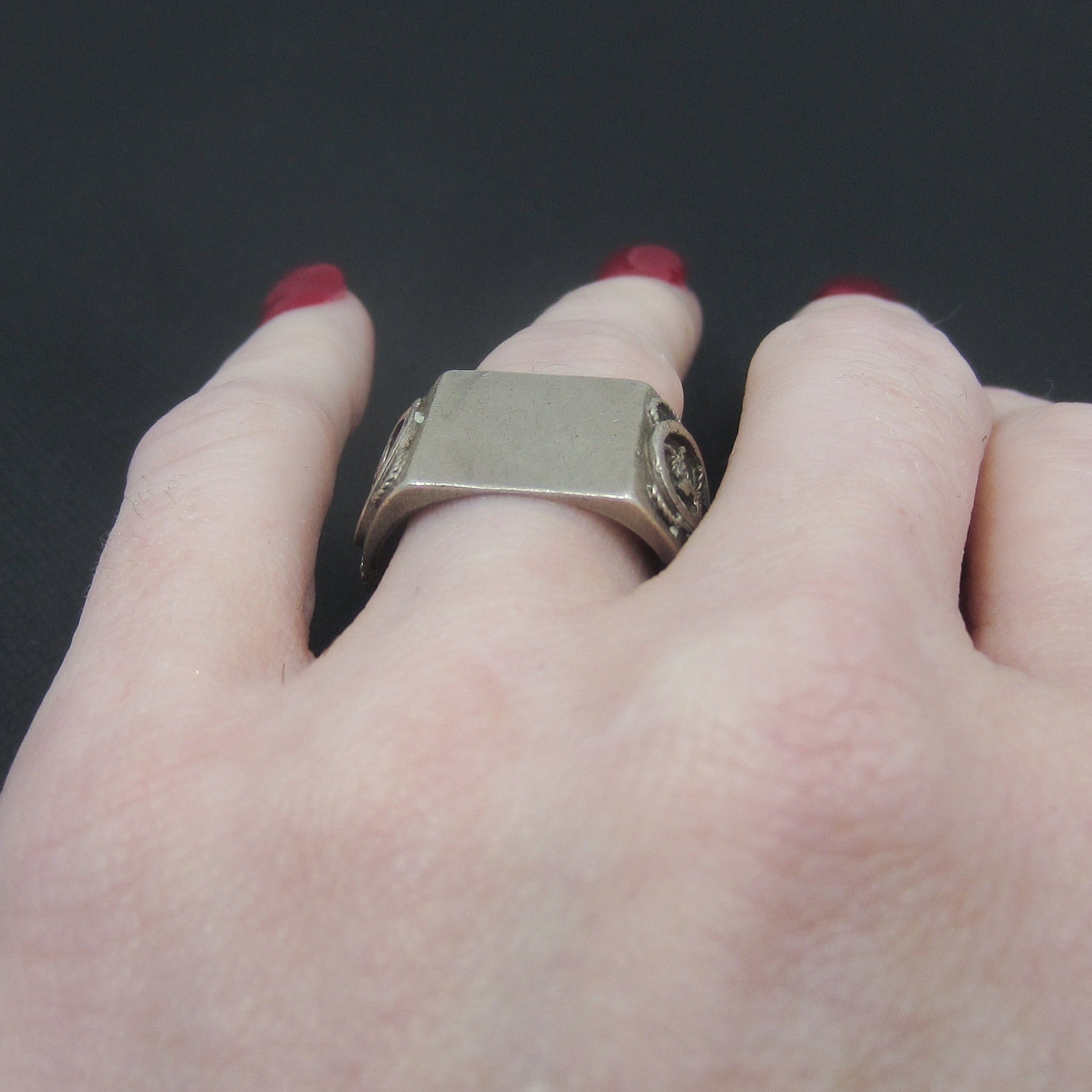 This antique signet ring was made in France, I'm guessing circa 1920-30's but it could be earlier. It's sterling silver with French hallmarks and it's blank--meaning it is ready for your engraving! Would make a great wedding band for a man.