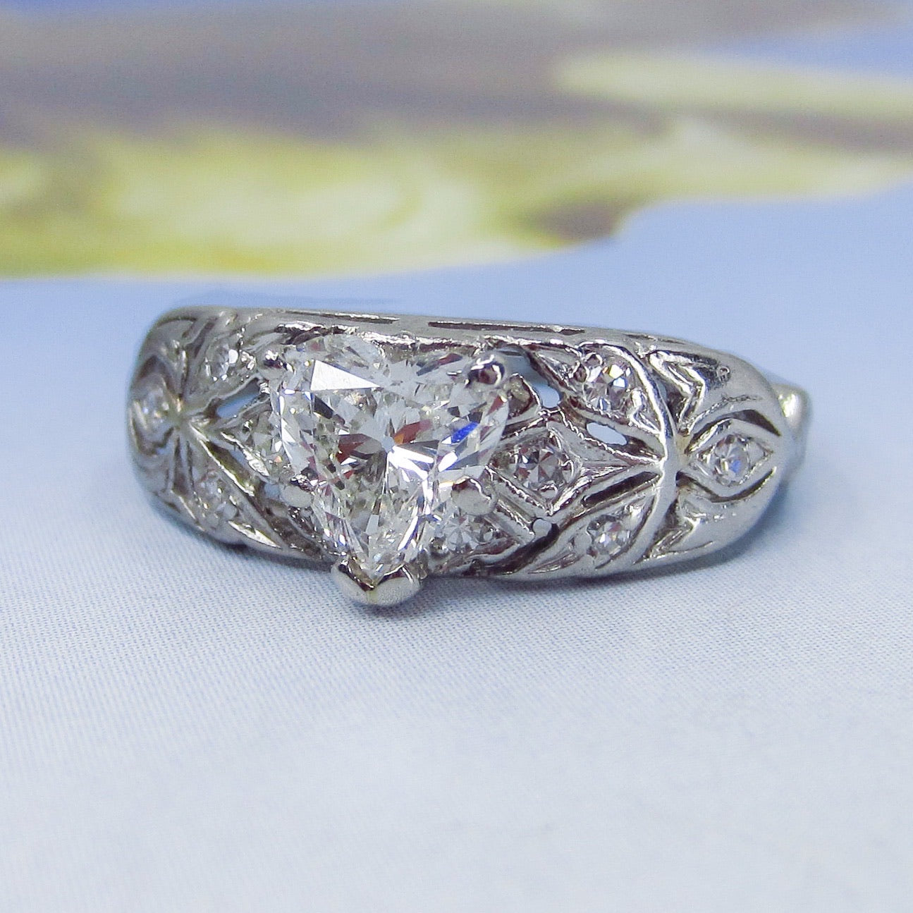 SOLD- Art Deco Heart Cut Diamond Engagement Ring Platinum c. 1940