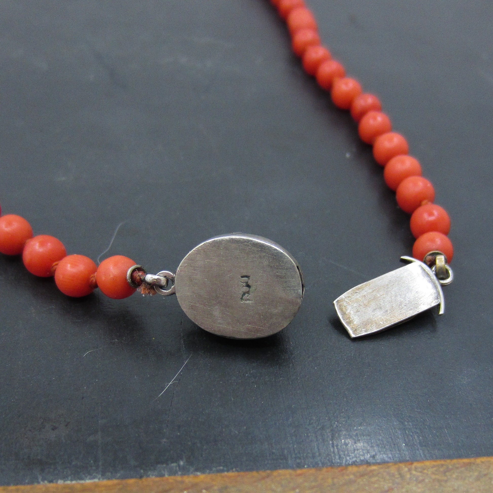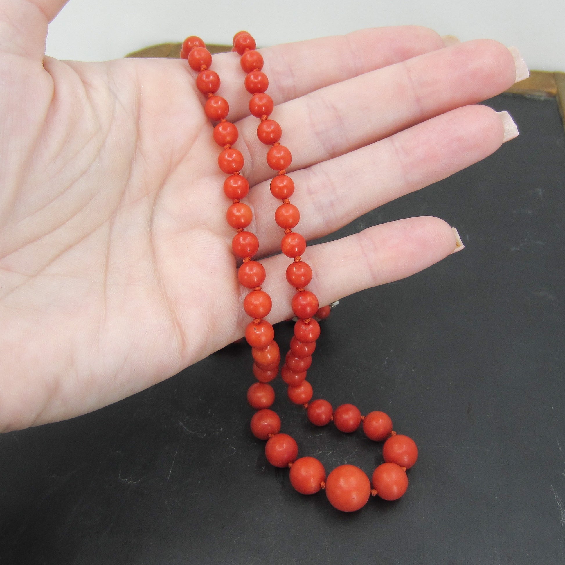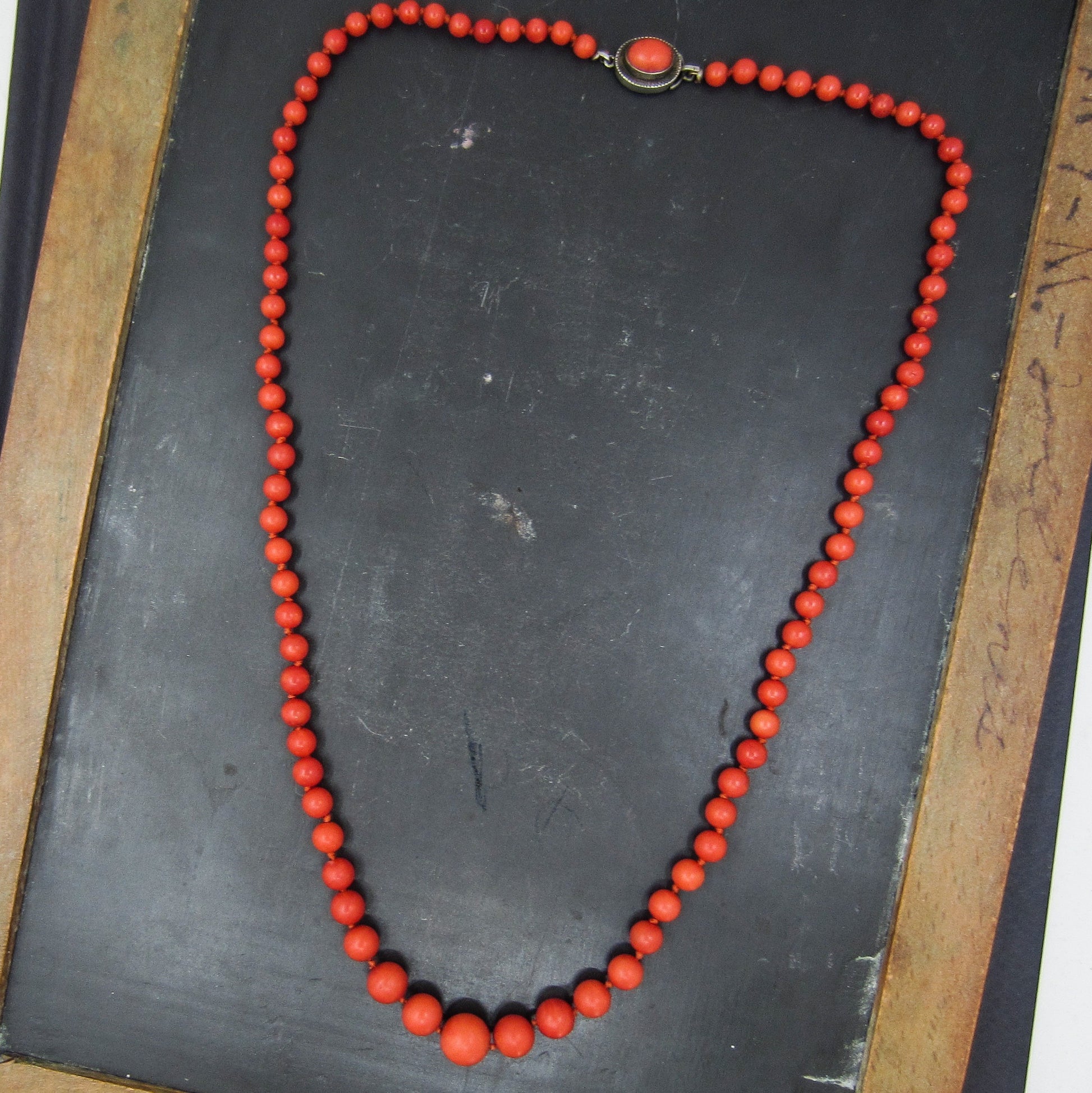 SOLD-Art Deco Italian Graduated Coral Bead Necklace 800 Silver c. 1920
