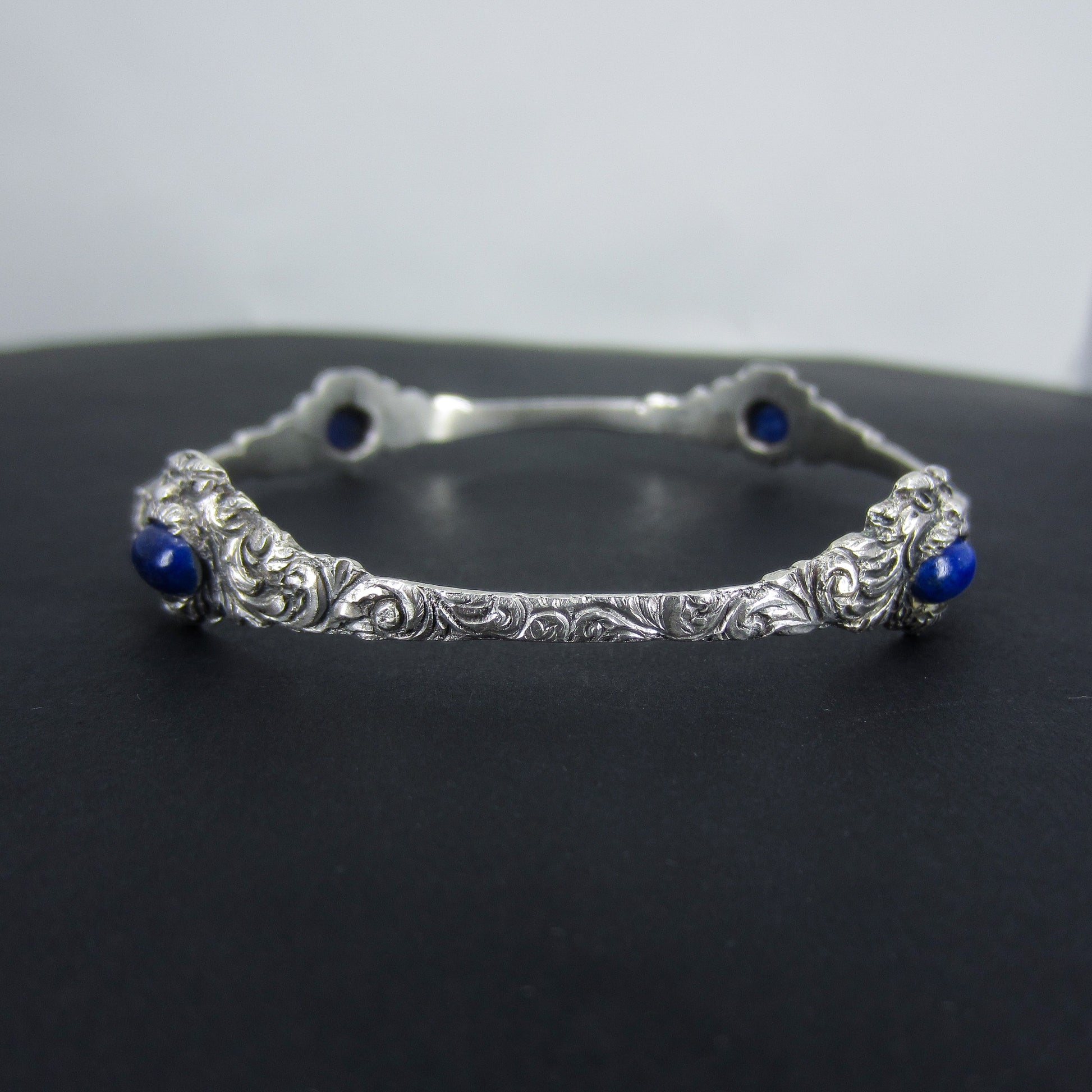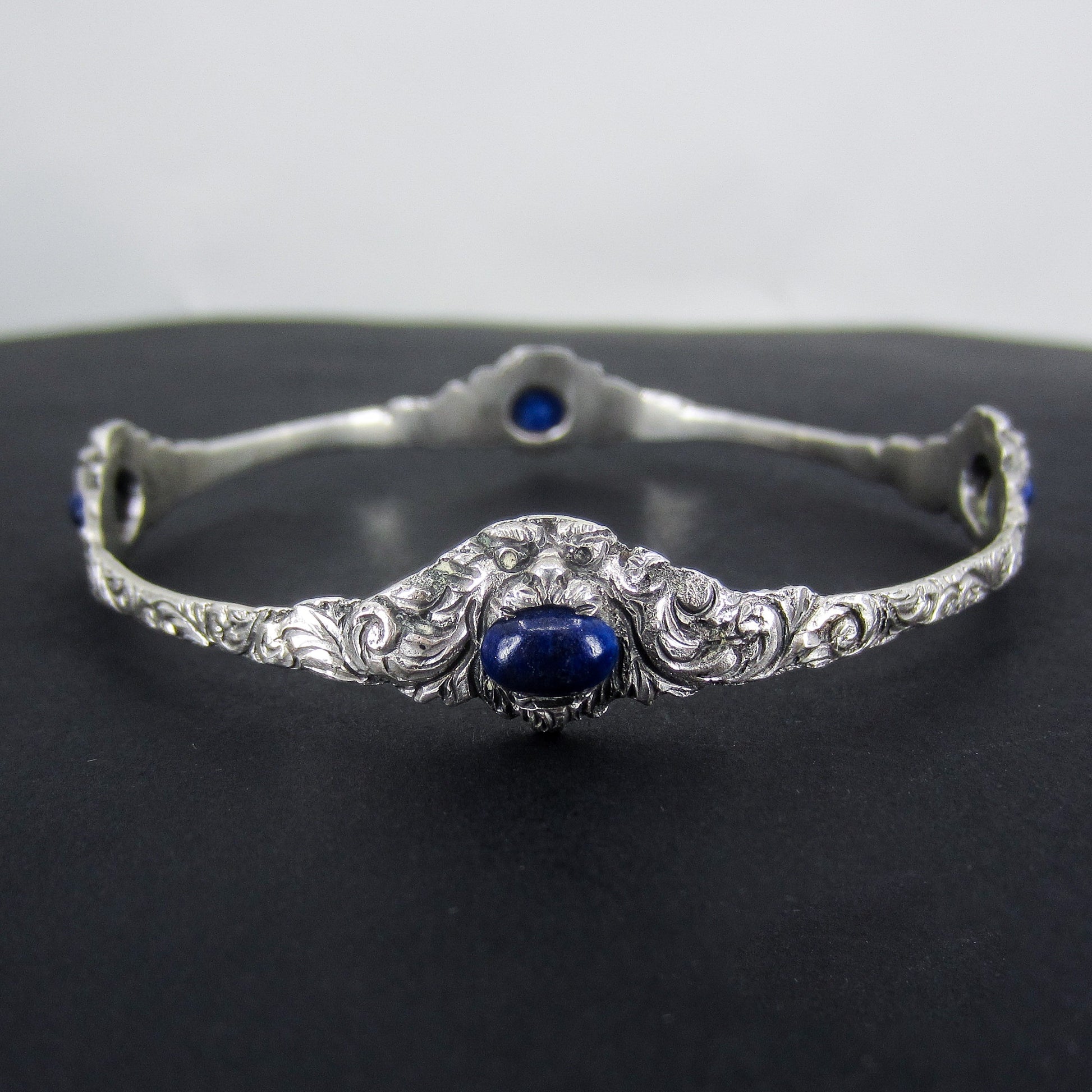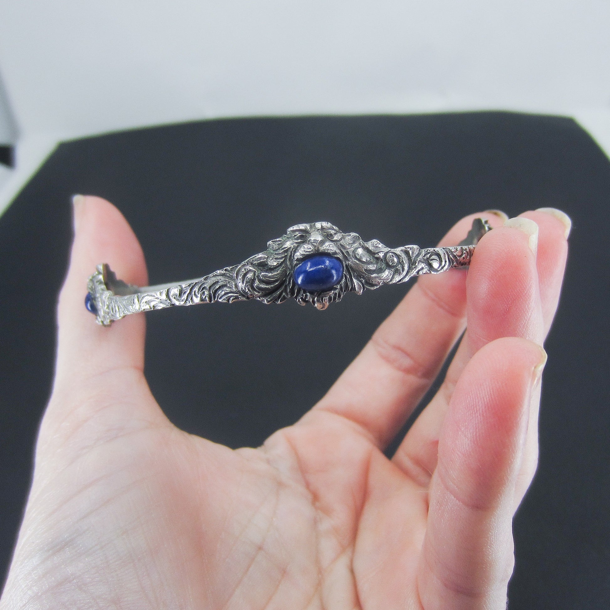 SOLD--Art Deco Lapis Lion Armlet Bracelet Sterling Silver c. 1920