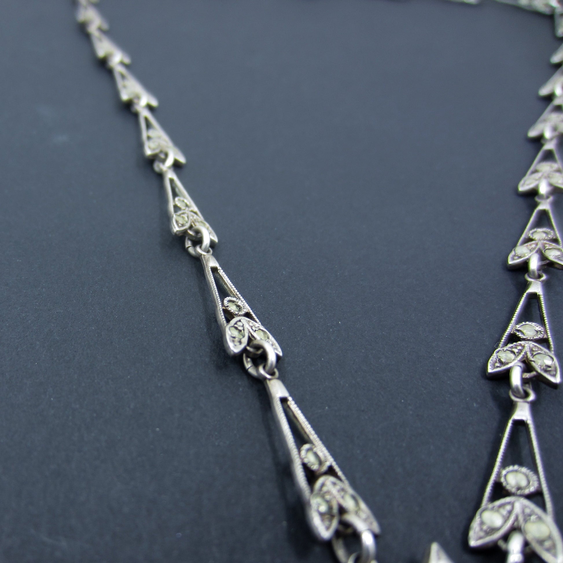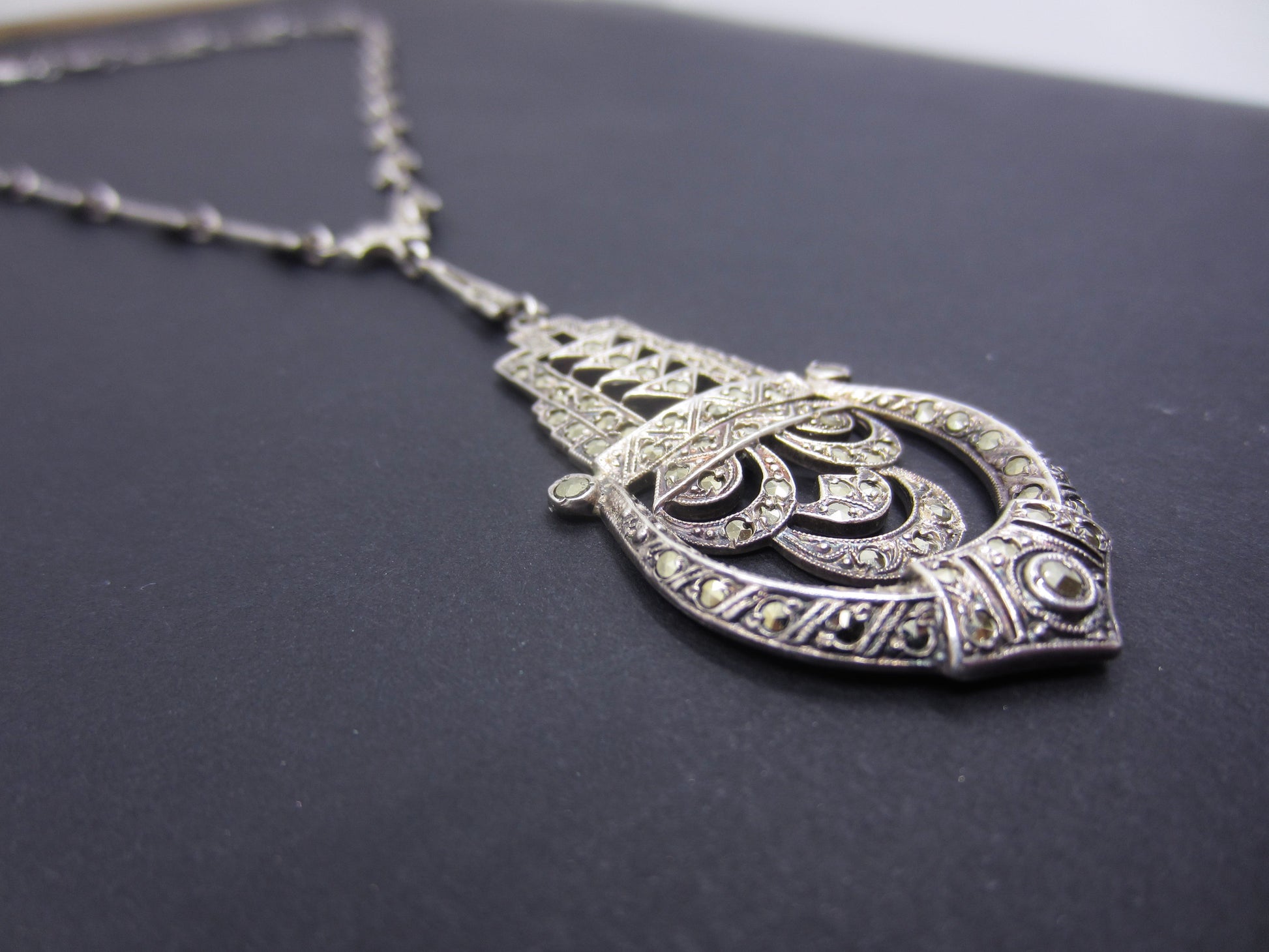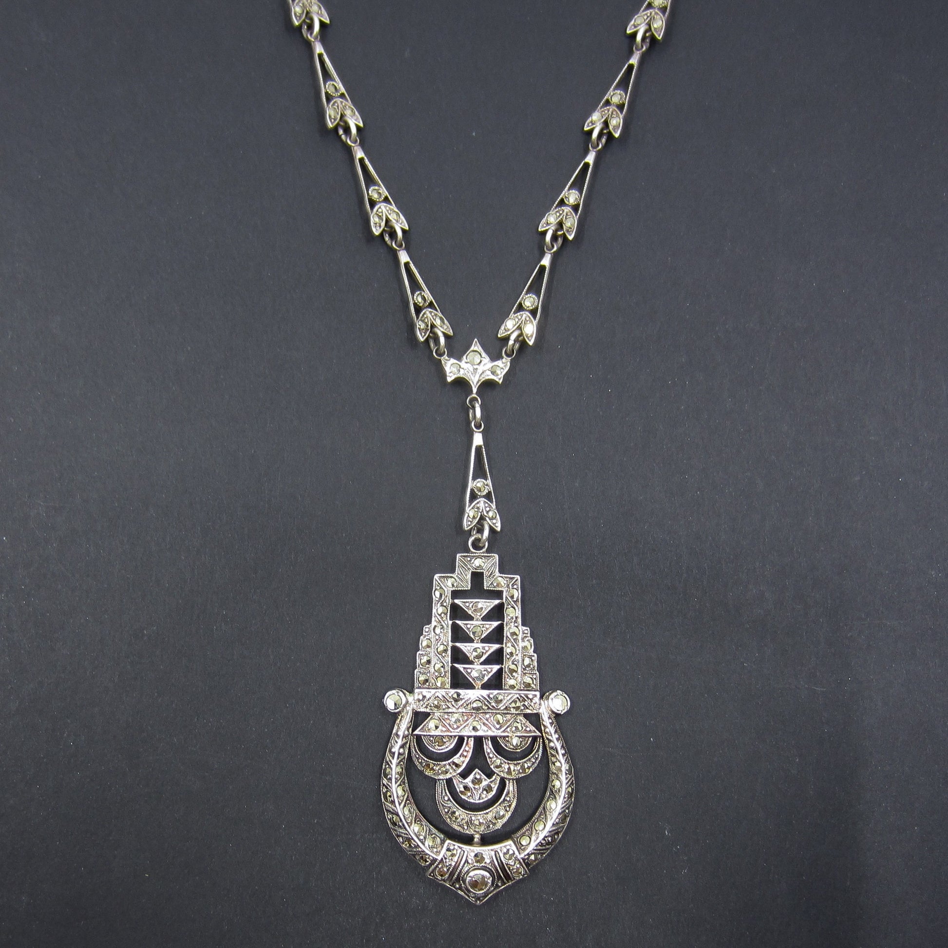 SOLD--Art Deco Marcasite Drop Necklace Sterling Silver c. 1930