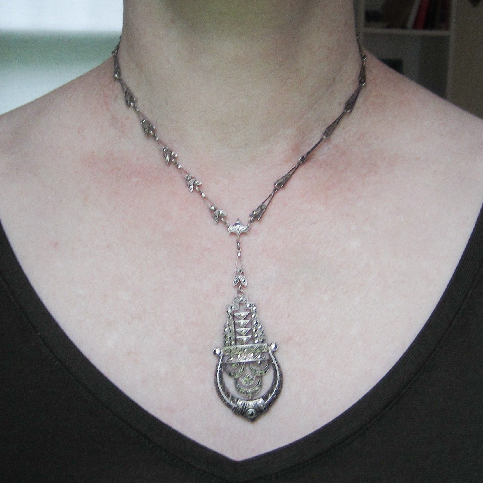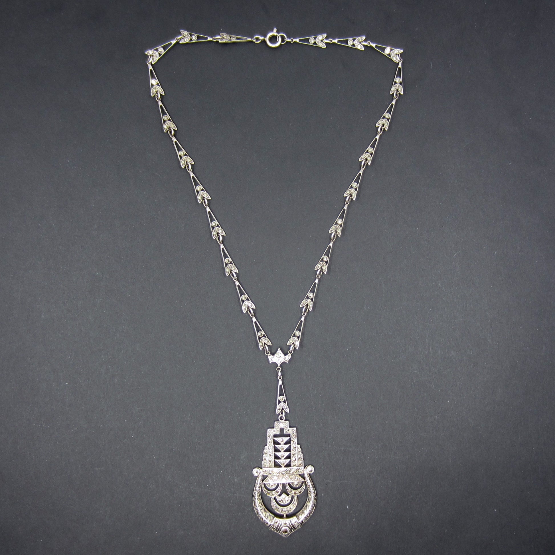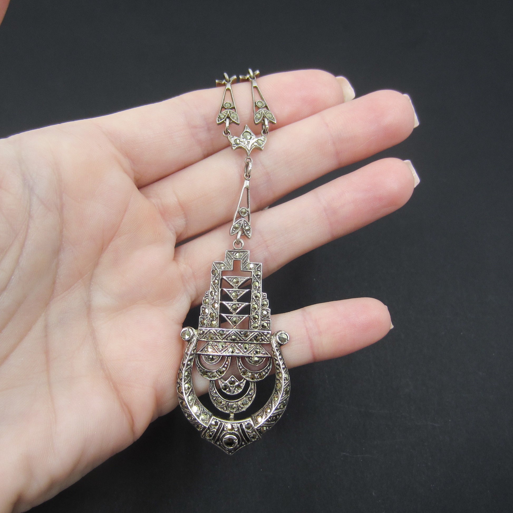 SOLD--Art Deco Marcasite Drop Necklace Sterling Silver c. 1930