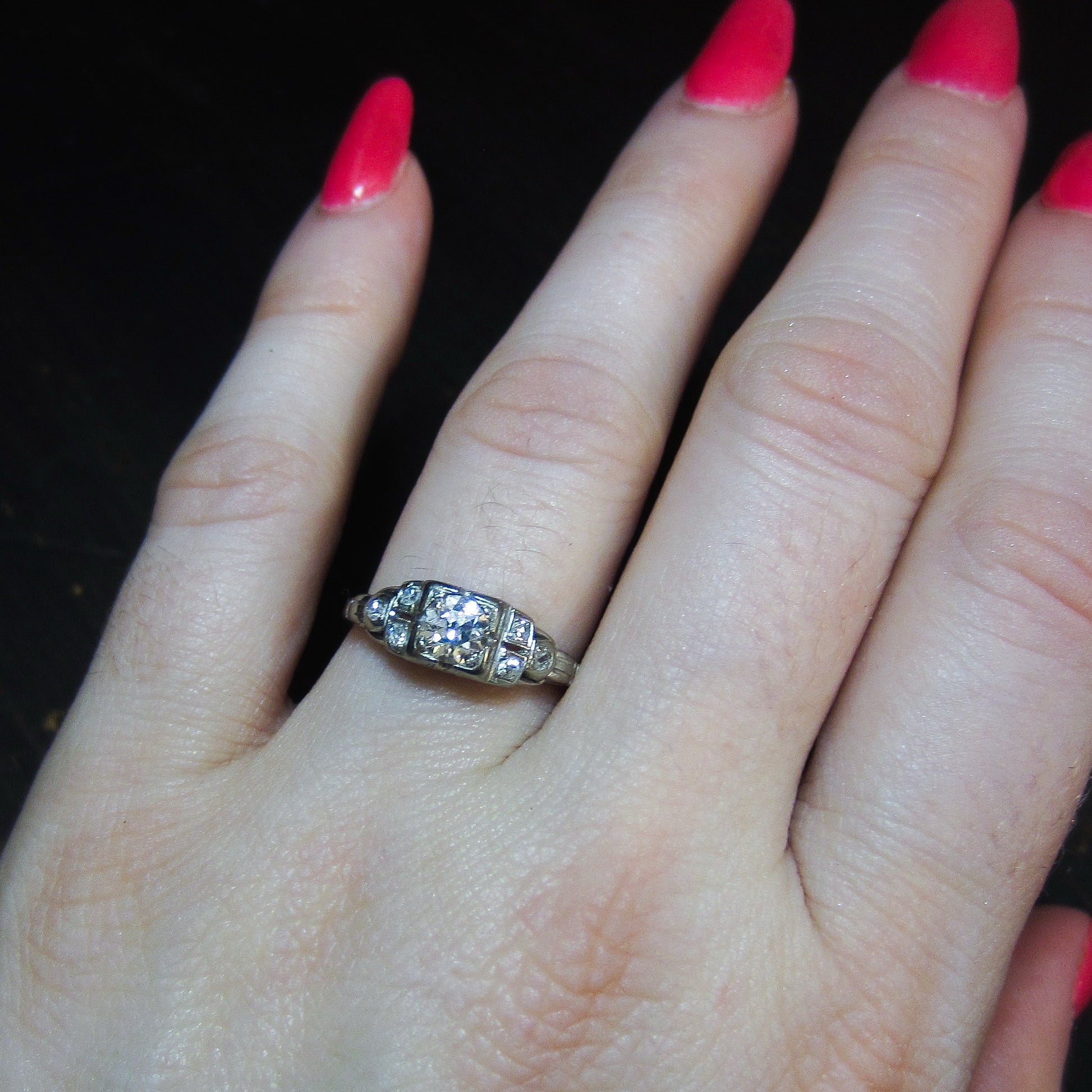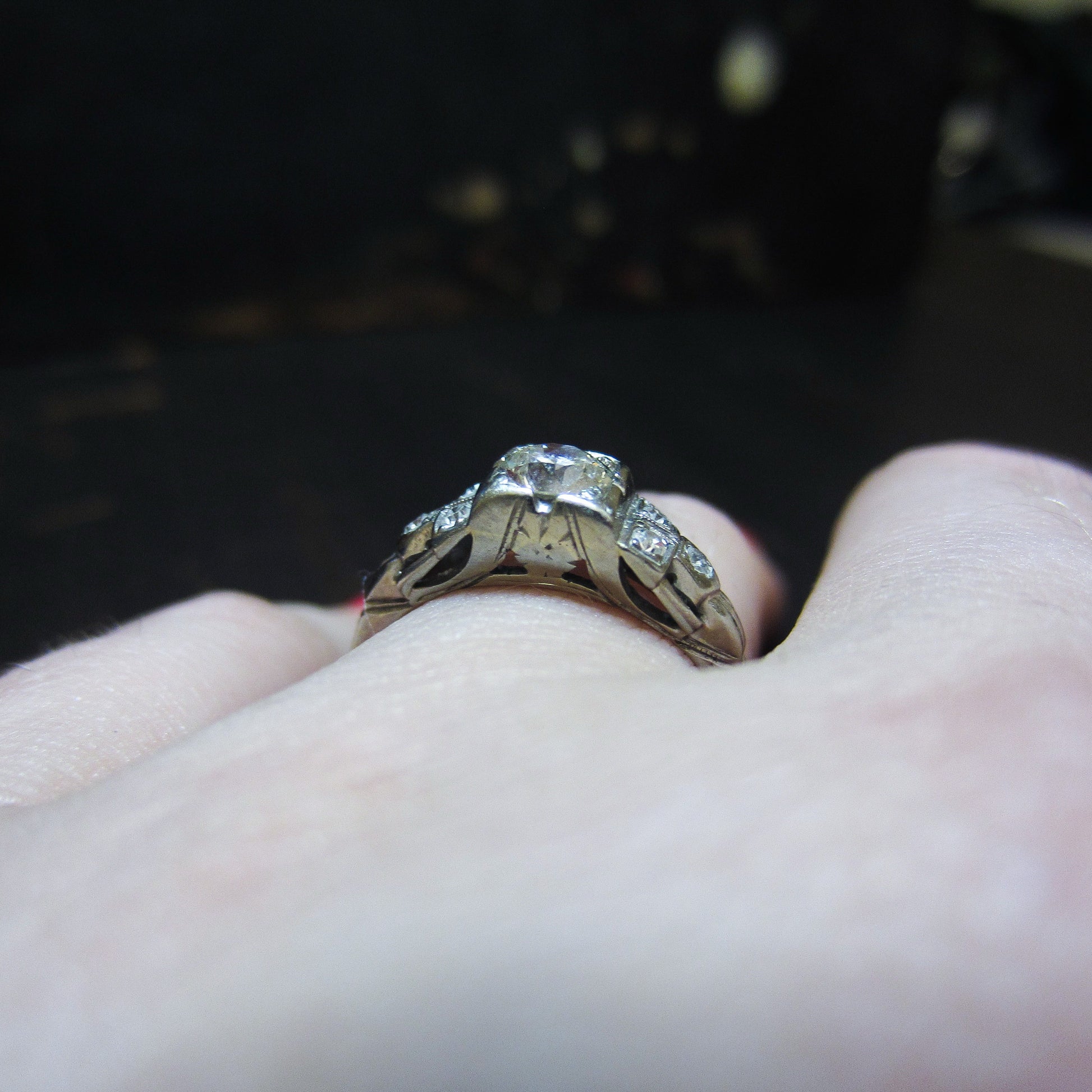 Art Deco Old European .41ct Diamond Ring 18k c. 1920