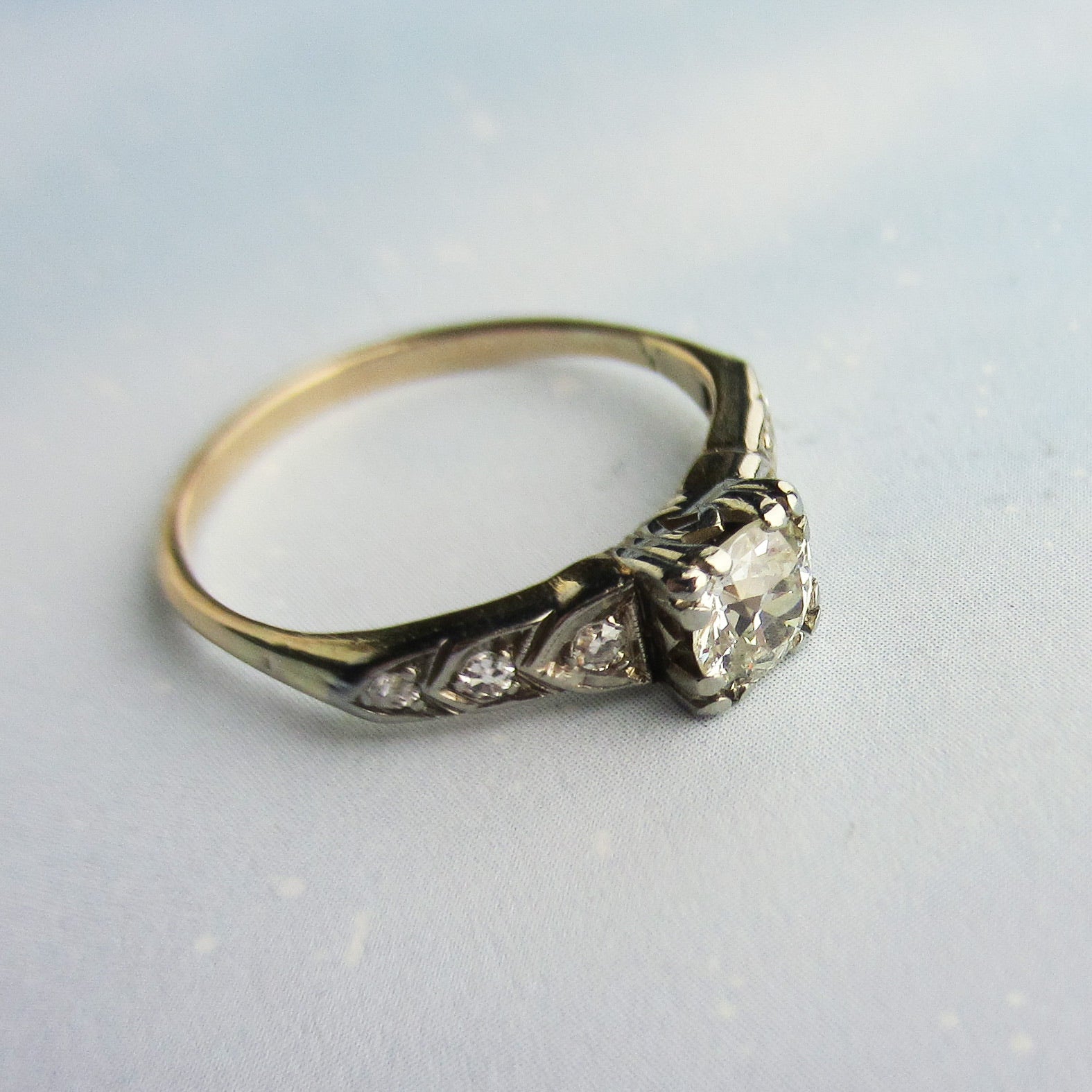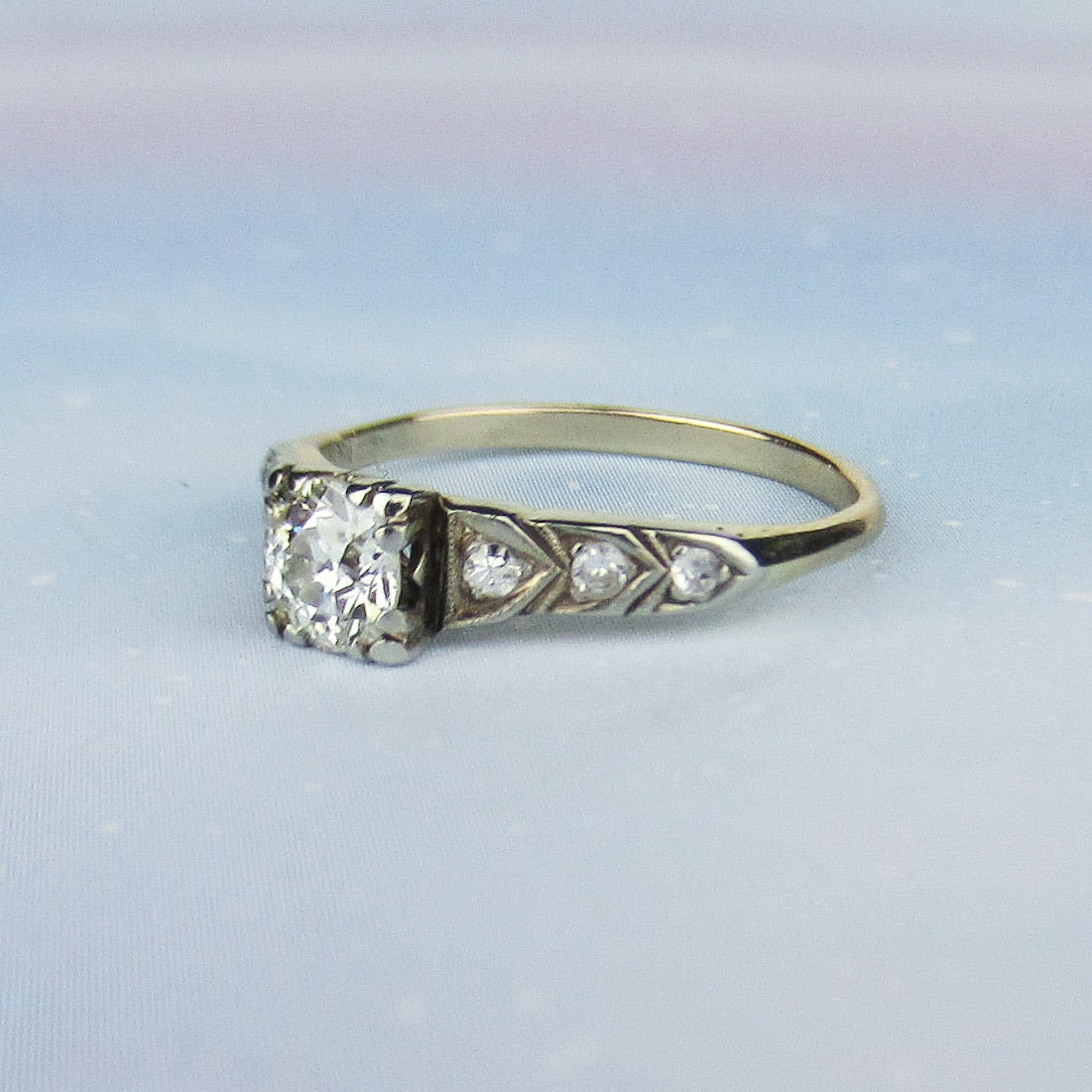 SOLD-Art Deco Old European .63ct Engagement Ring 14k c. 1930