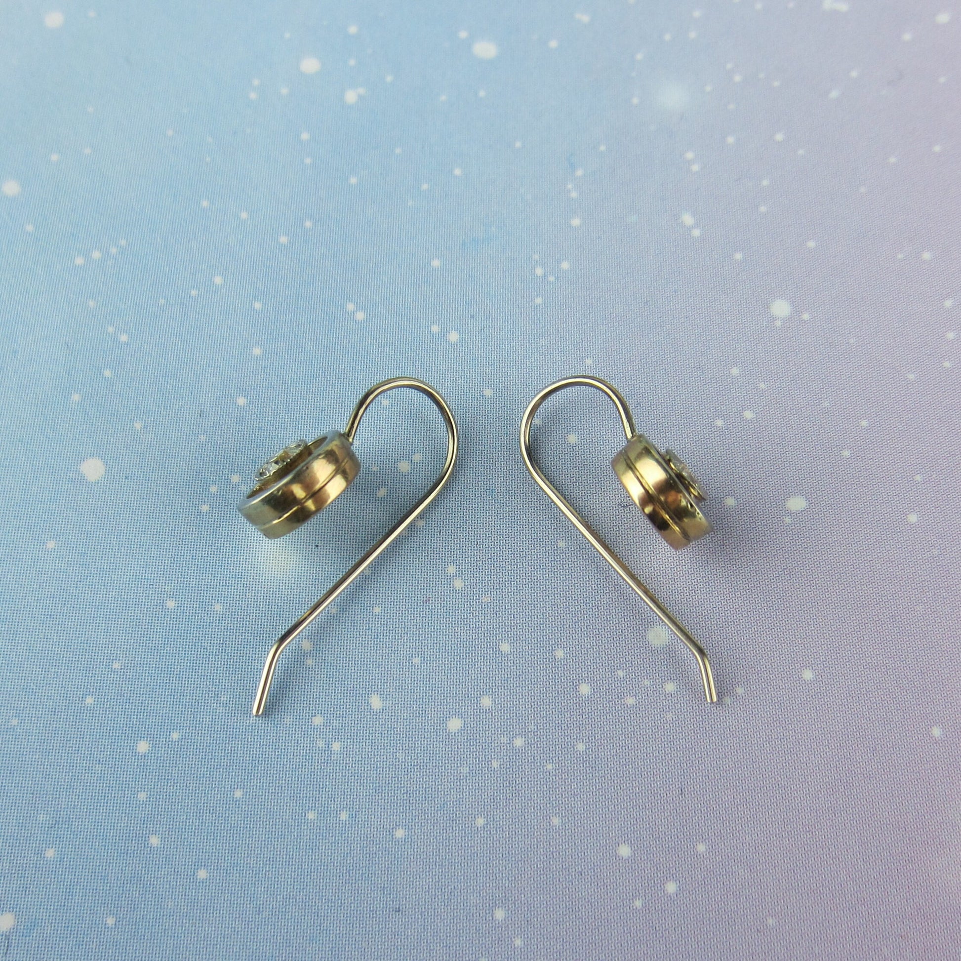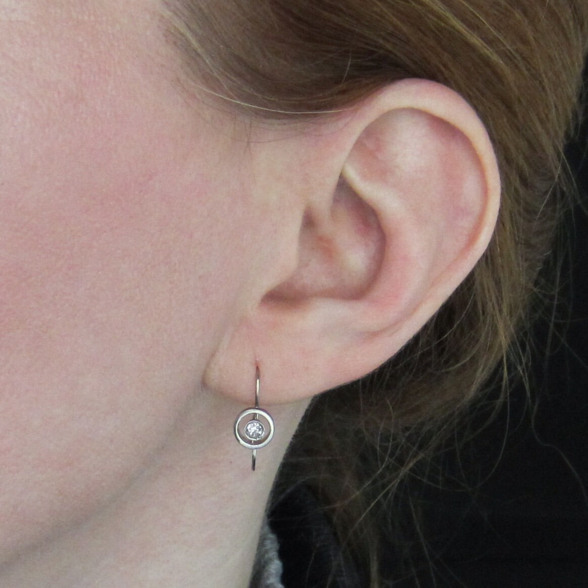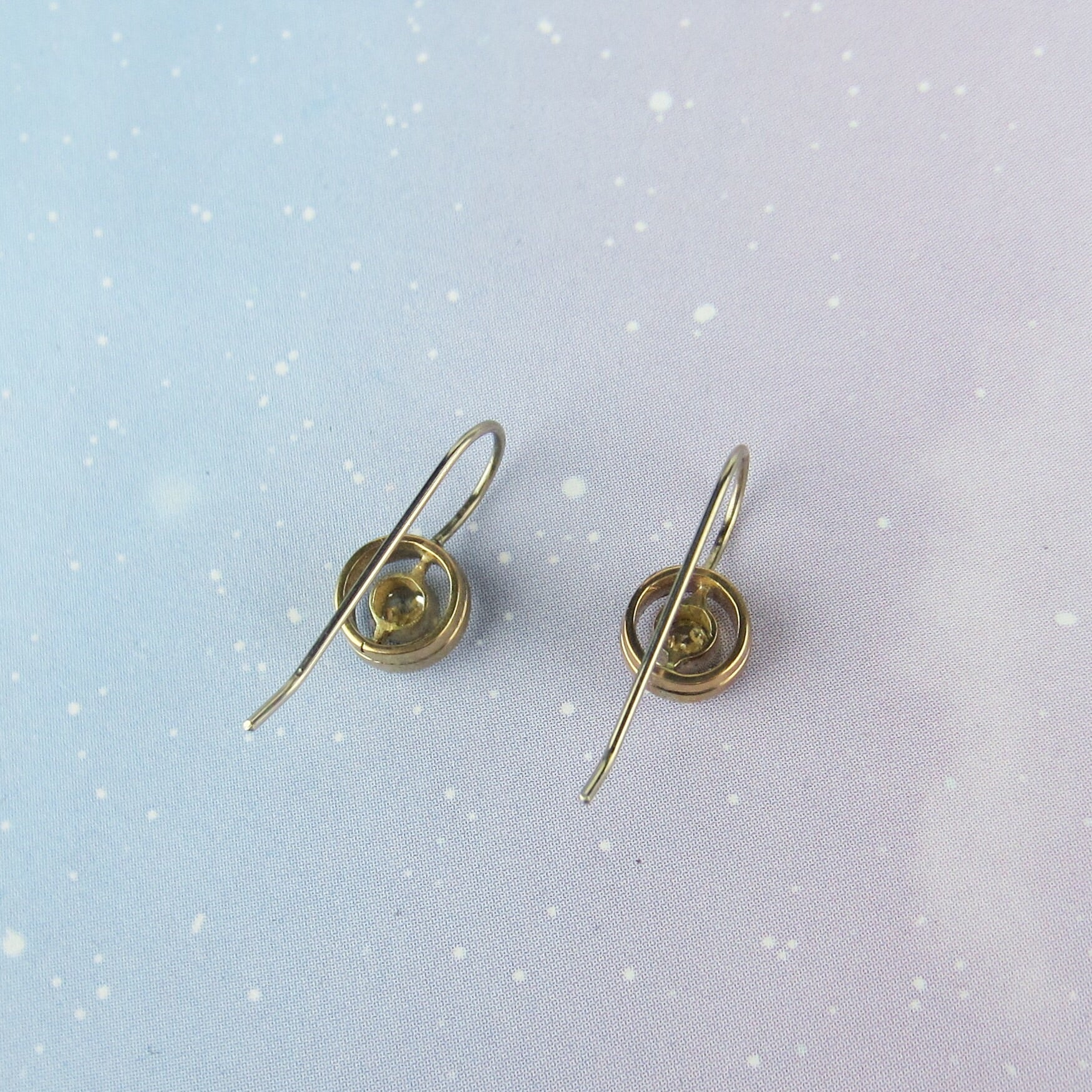 Measure a tad over 1/2" length from top of earwire to bottom of frame. Target frame measures 7mm diameter.
