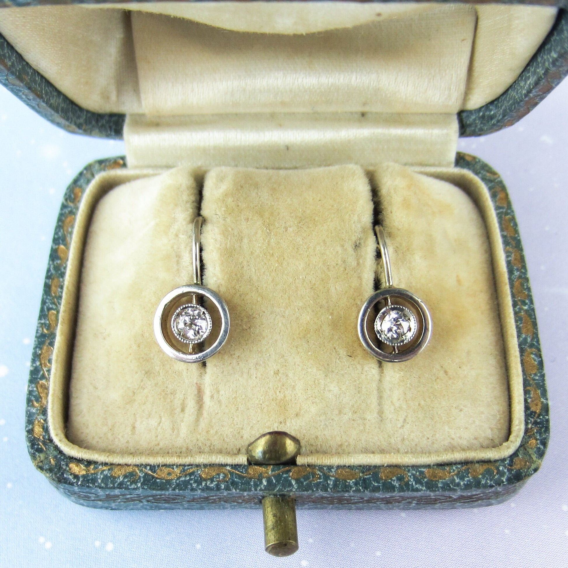 SOLD--Art Deco Old European Diamond Bezel Earrings 14k
