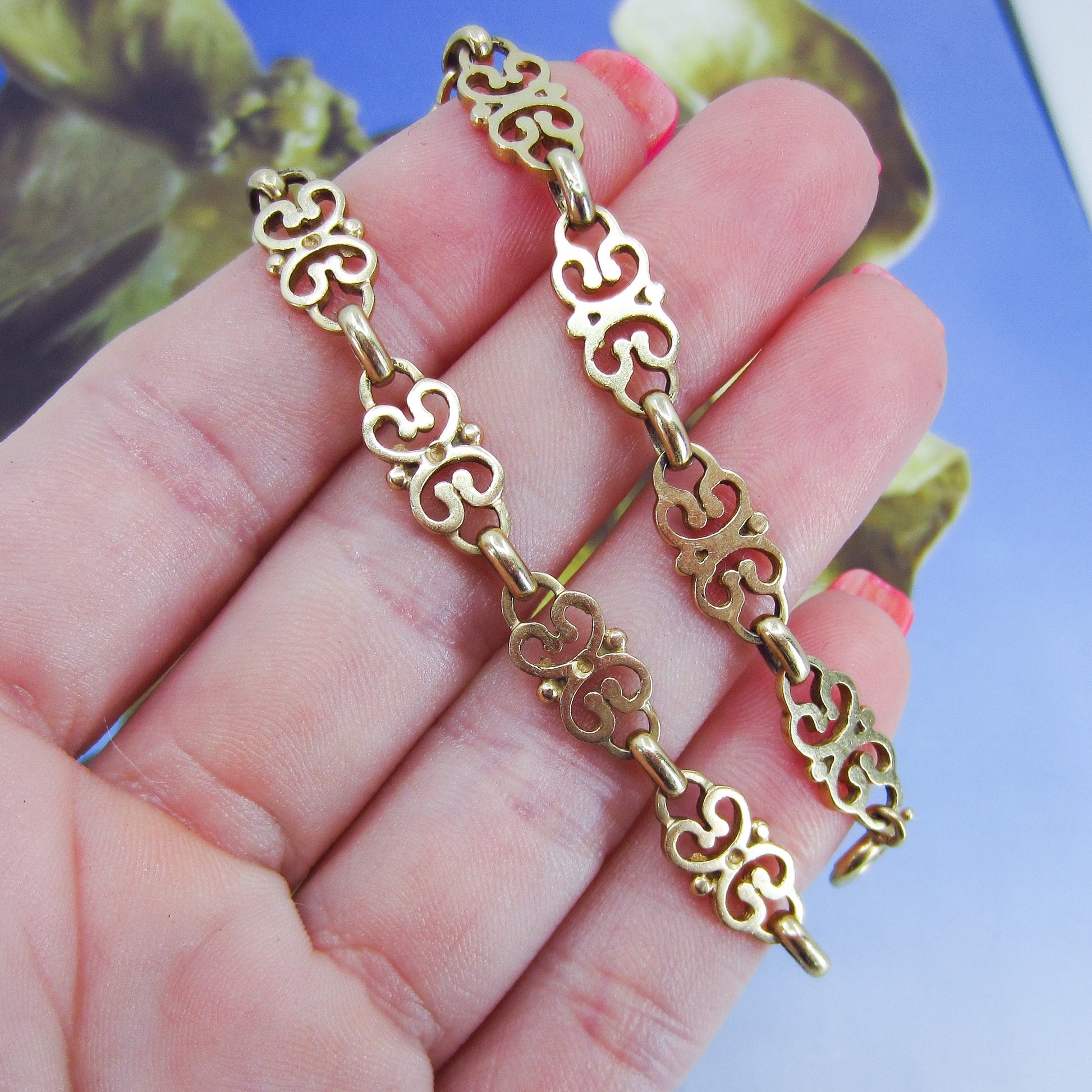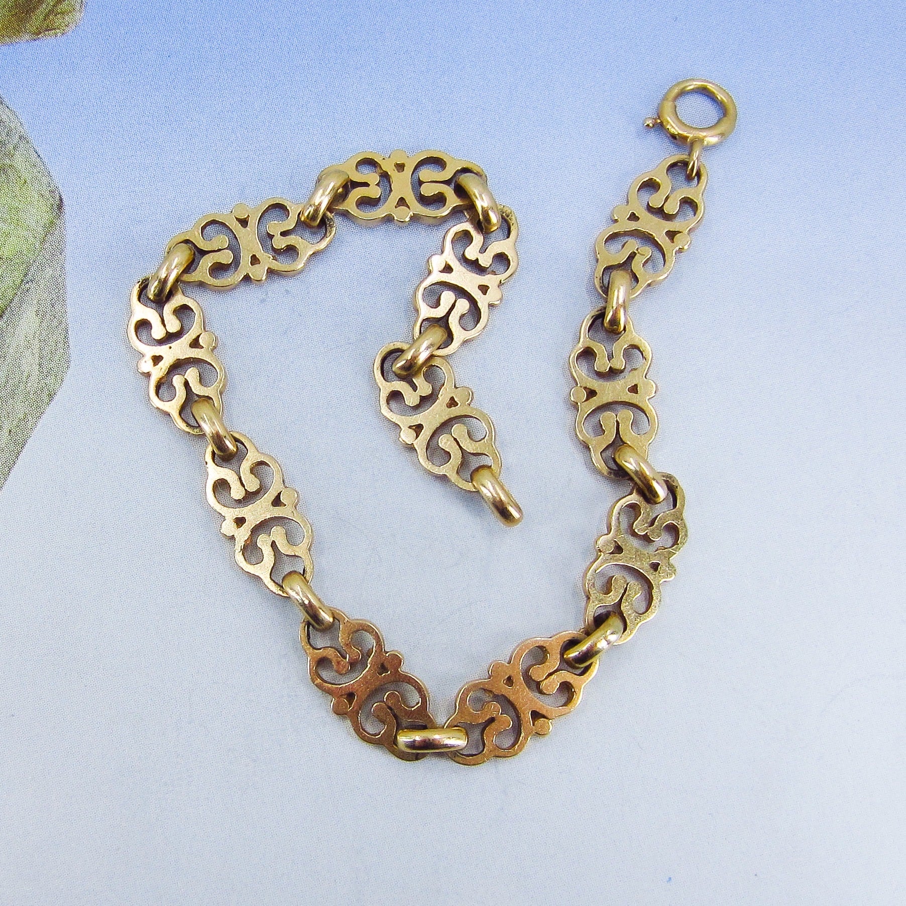 SOLD--Antique Ornate Link Bracelet 14k c. 1930