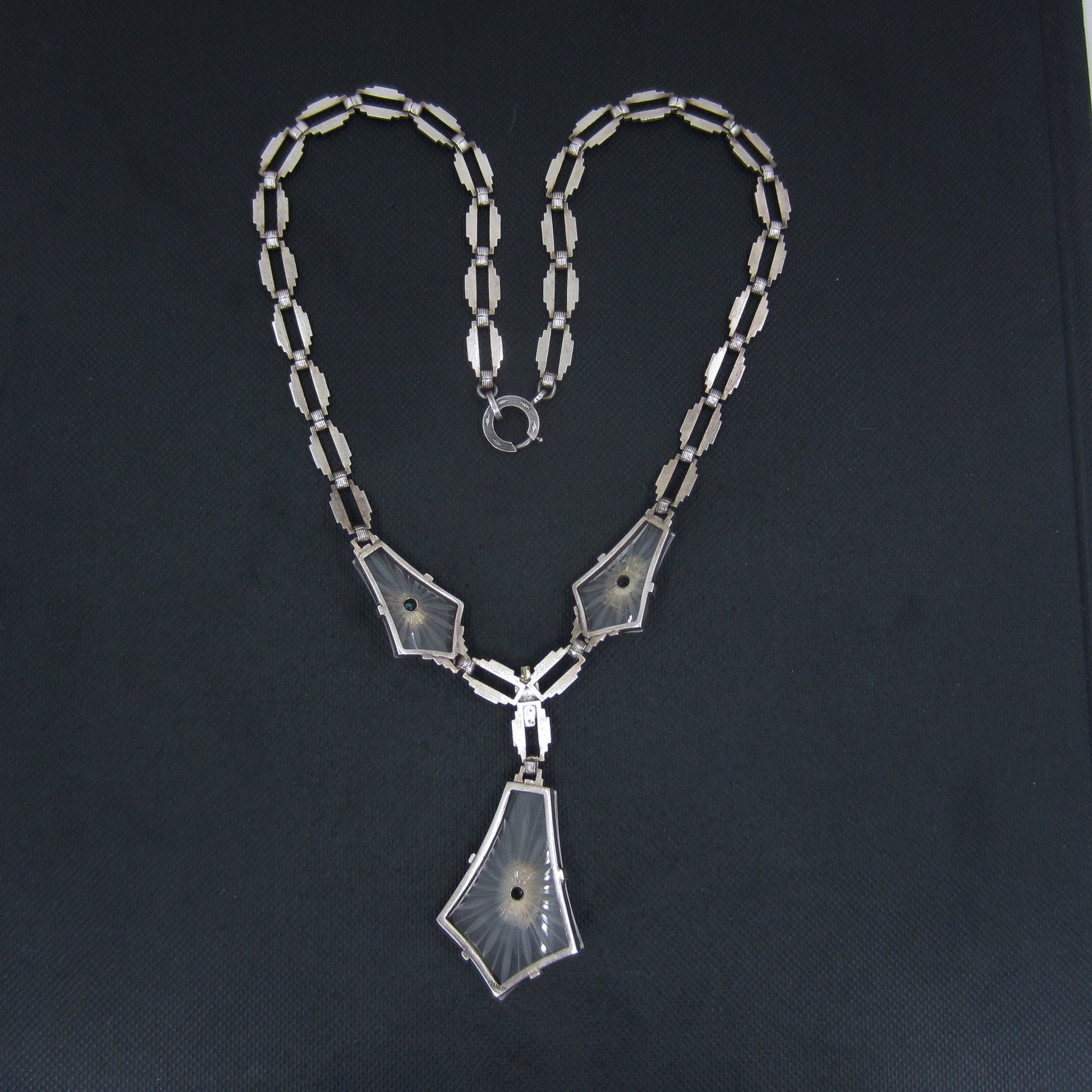 SOLD--Art Deco Pyrite and Carved Rock Crystal Necklace Sterling c. 1930