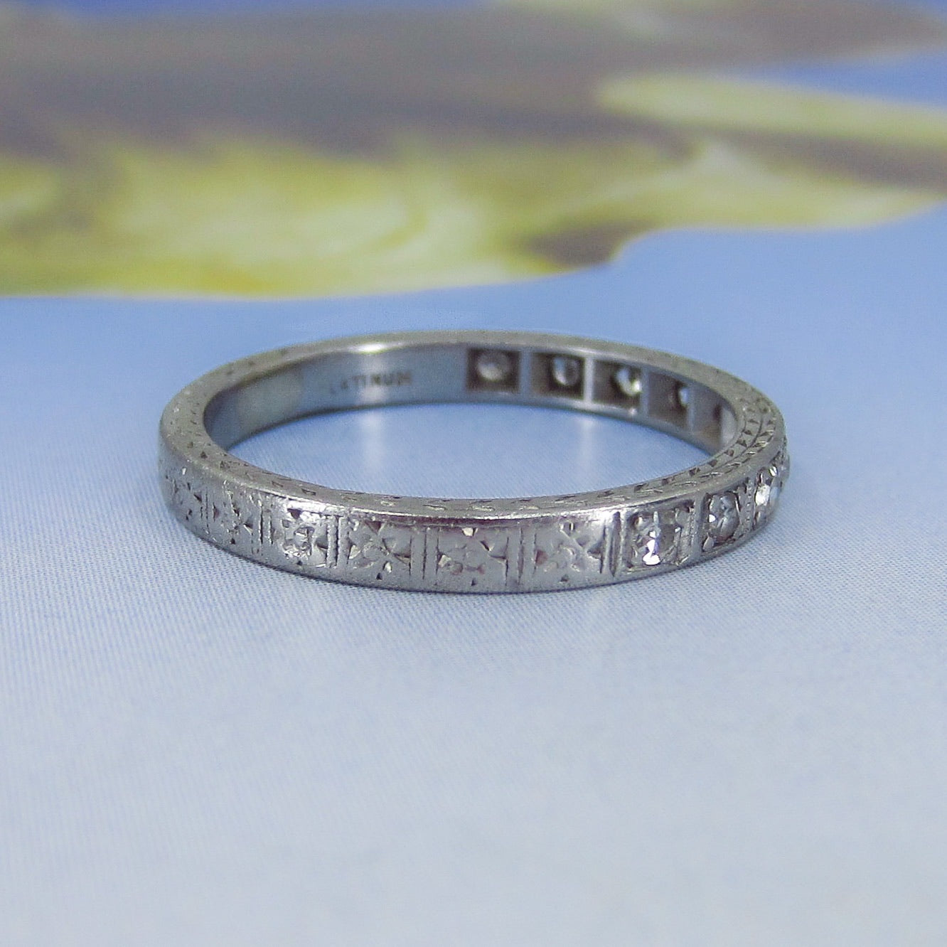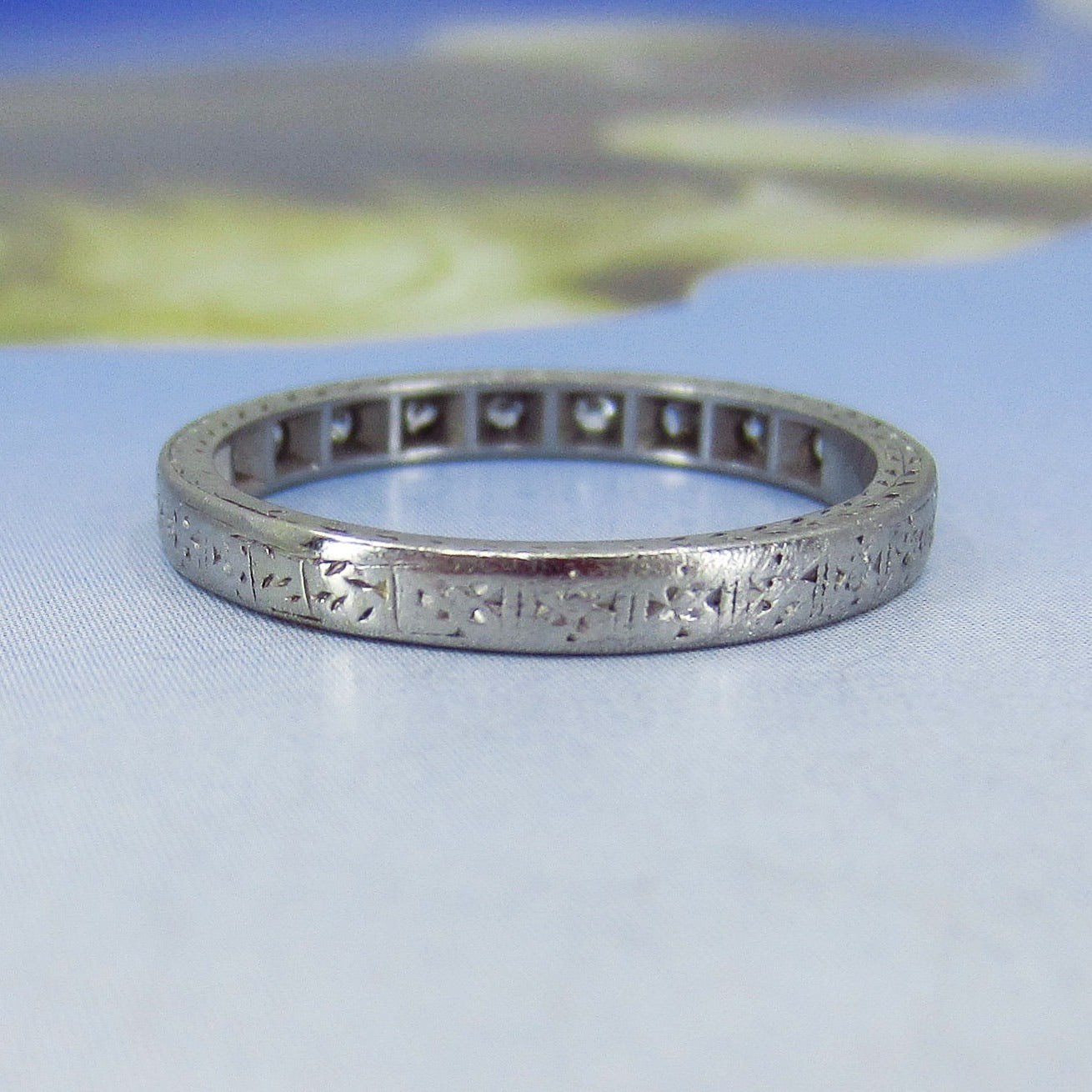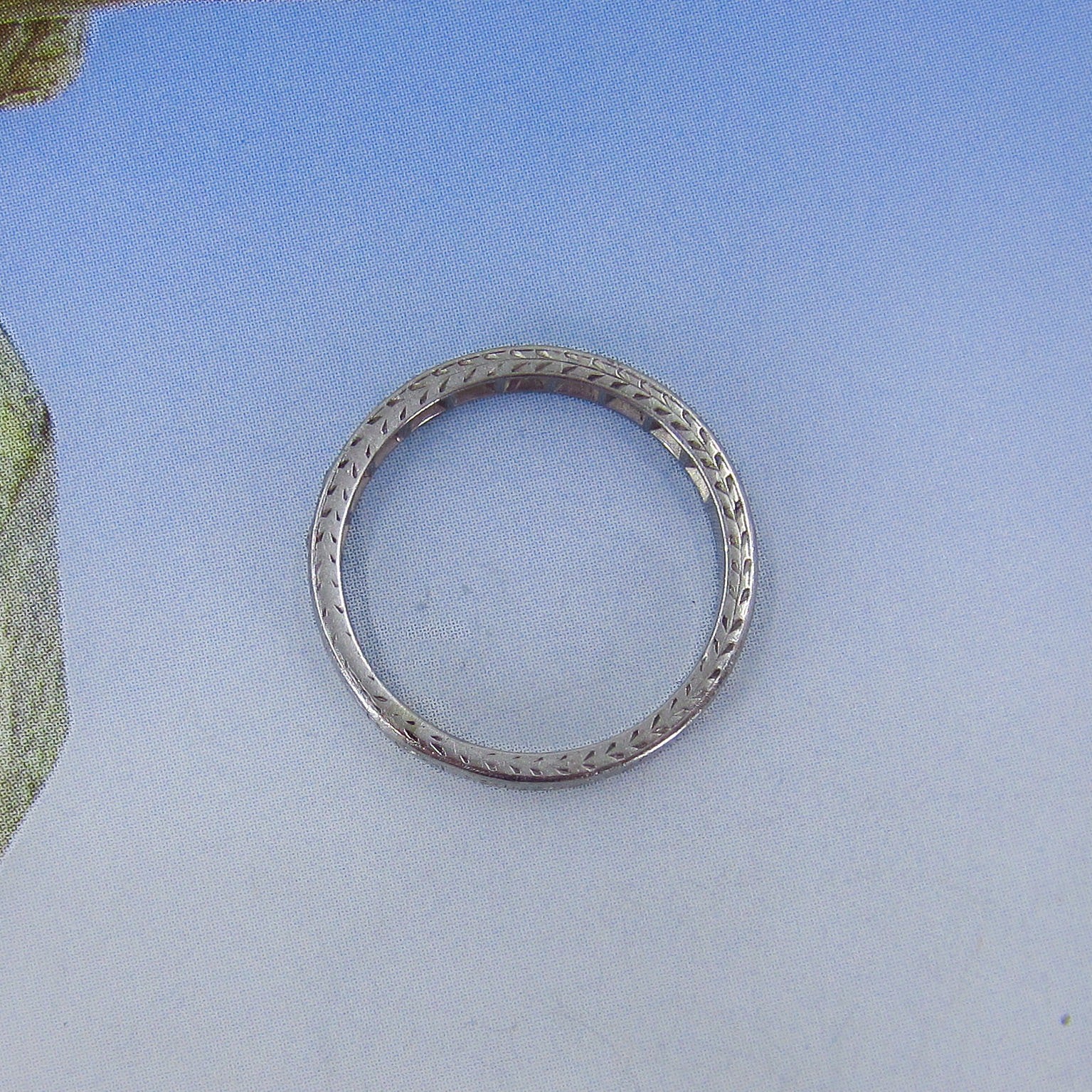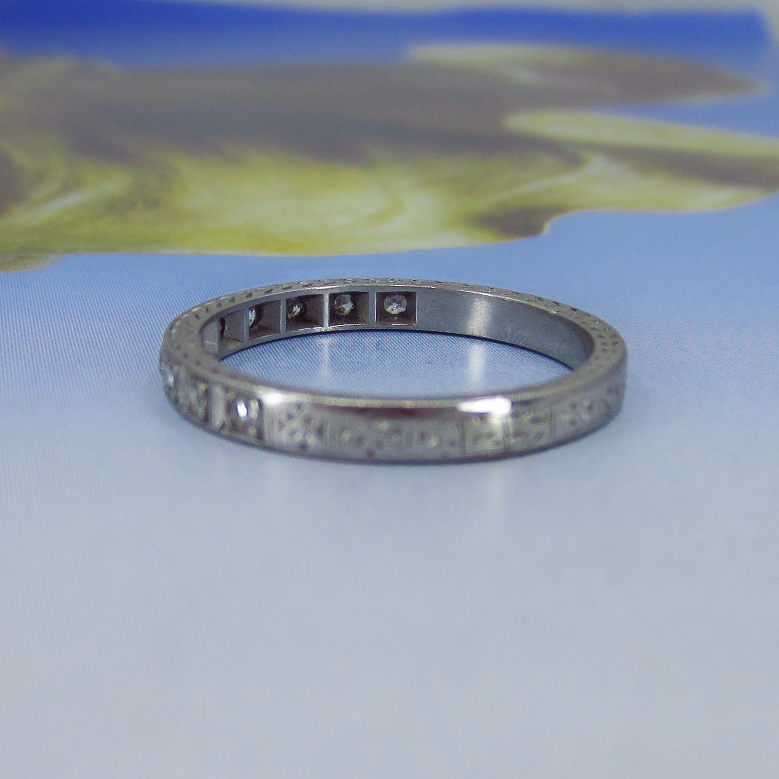 SOLD-Art Deco Ten Diamond Engraved Band Platinum c. 1930
