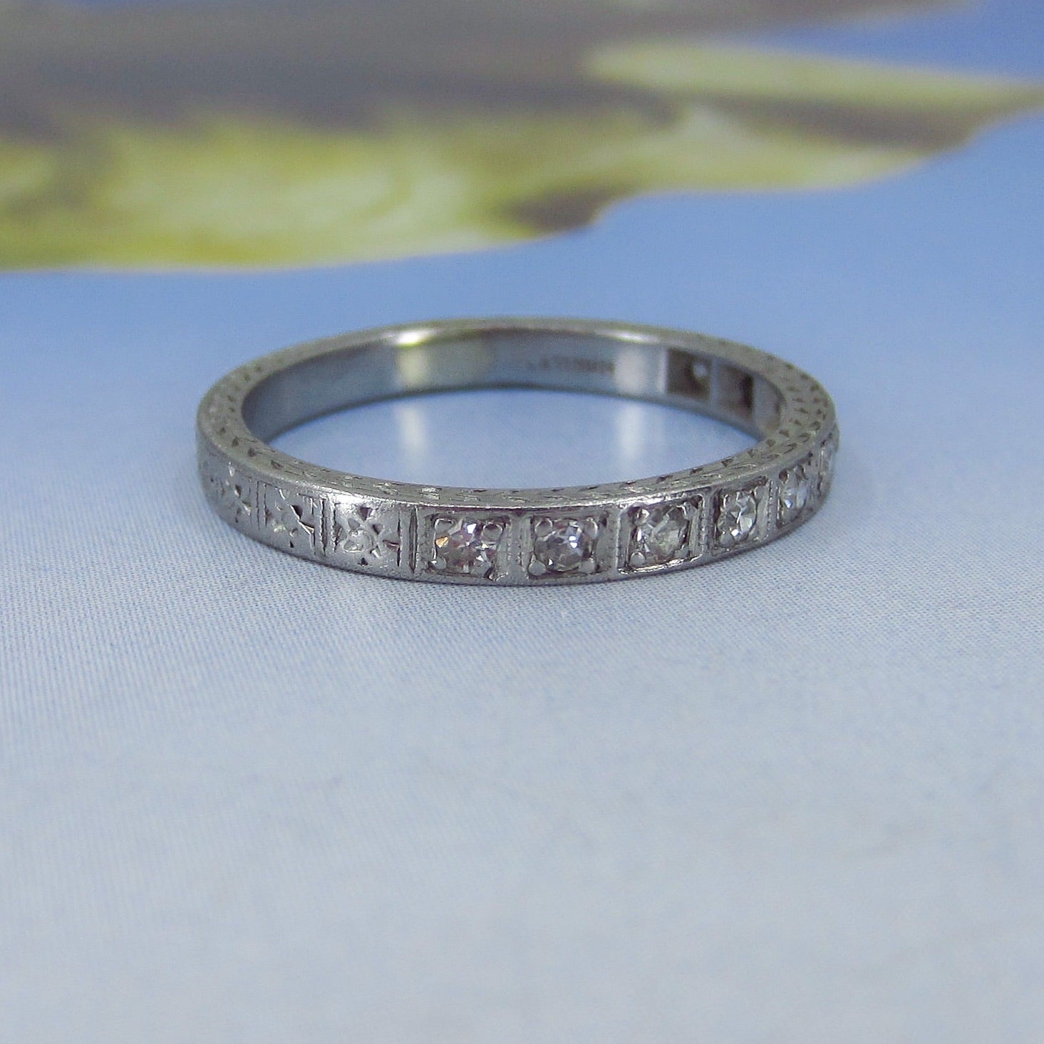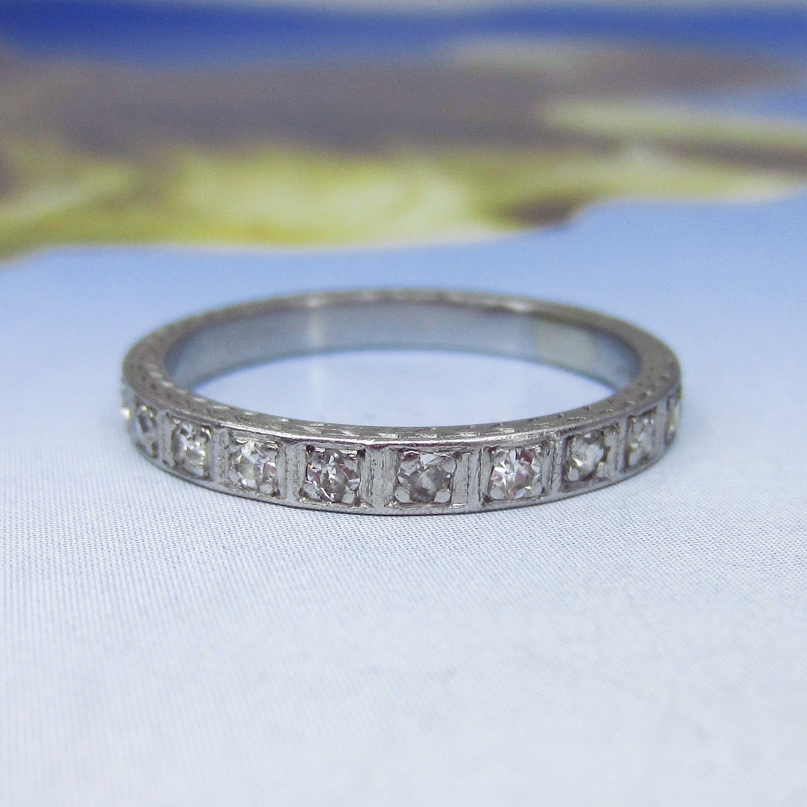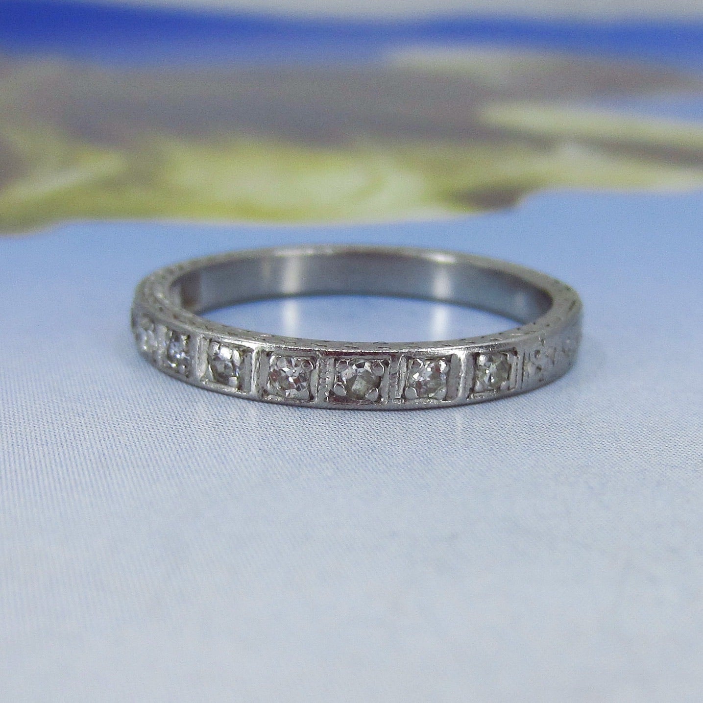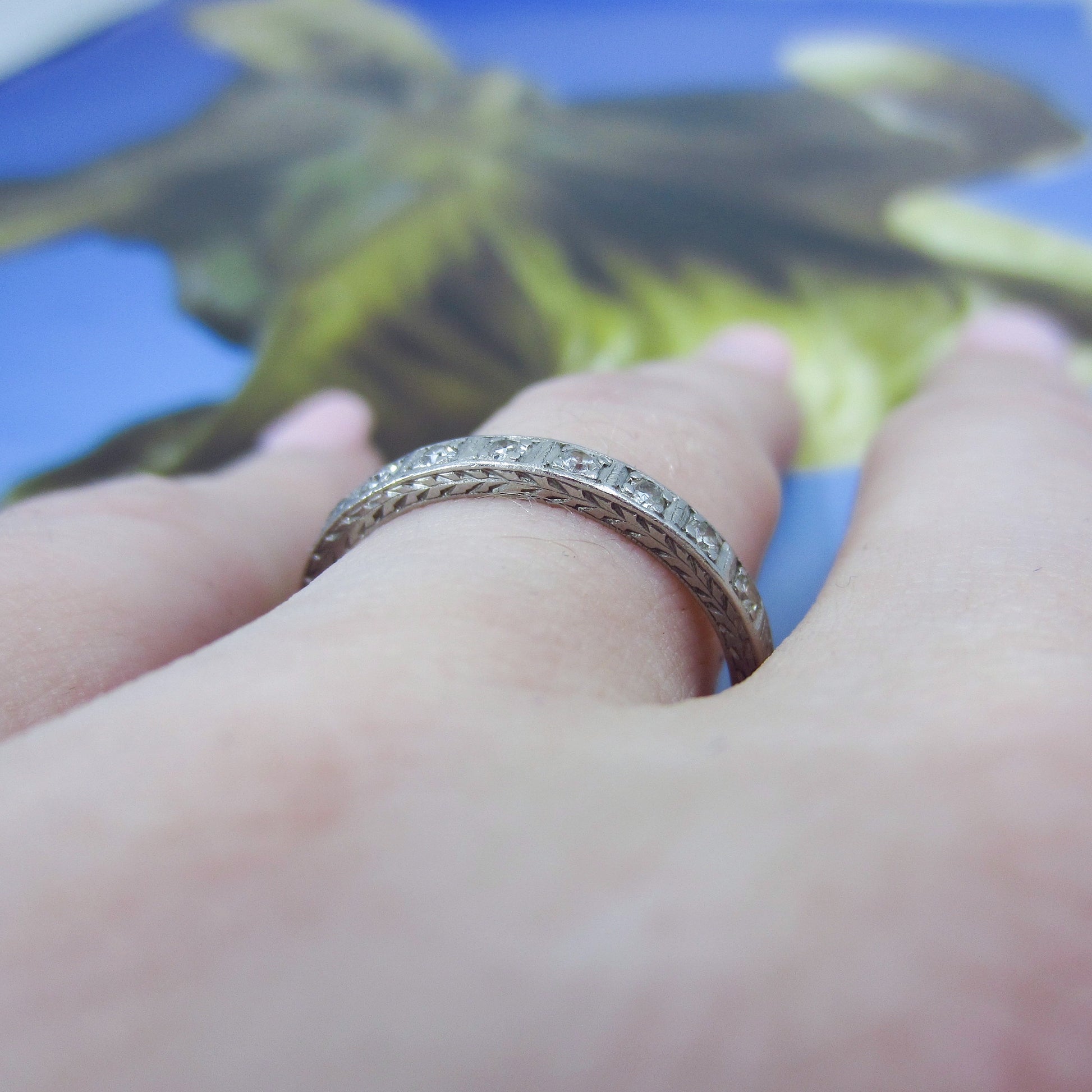 SOLD-Art Deco Ten Diamond Engraved Band Platinum c. 1930