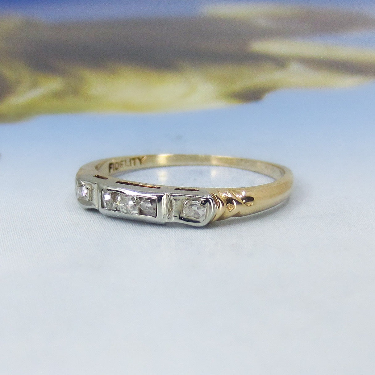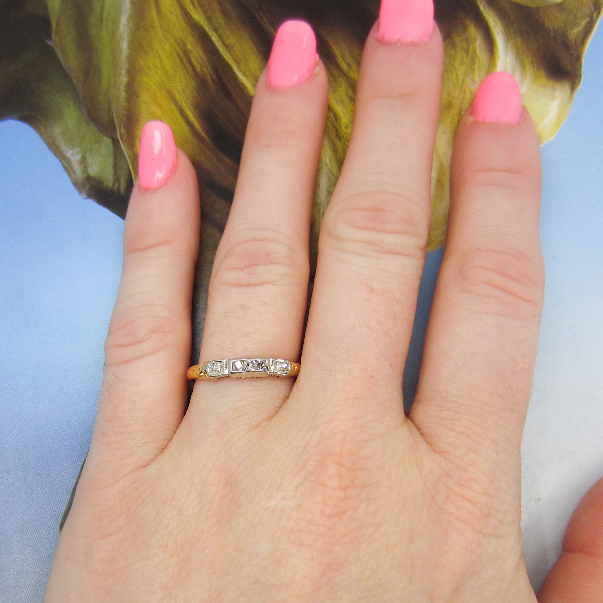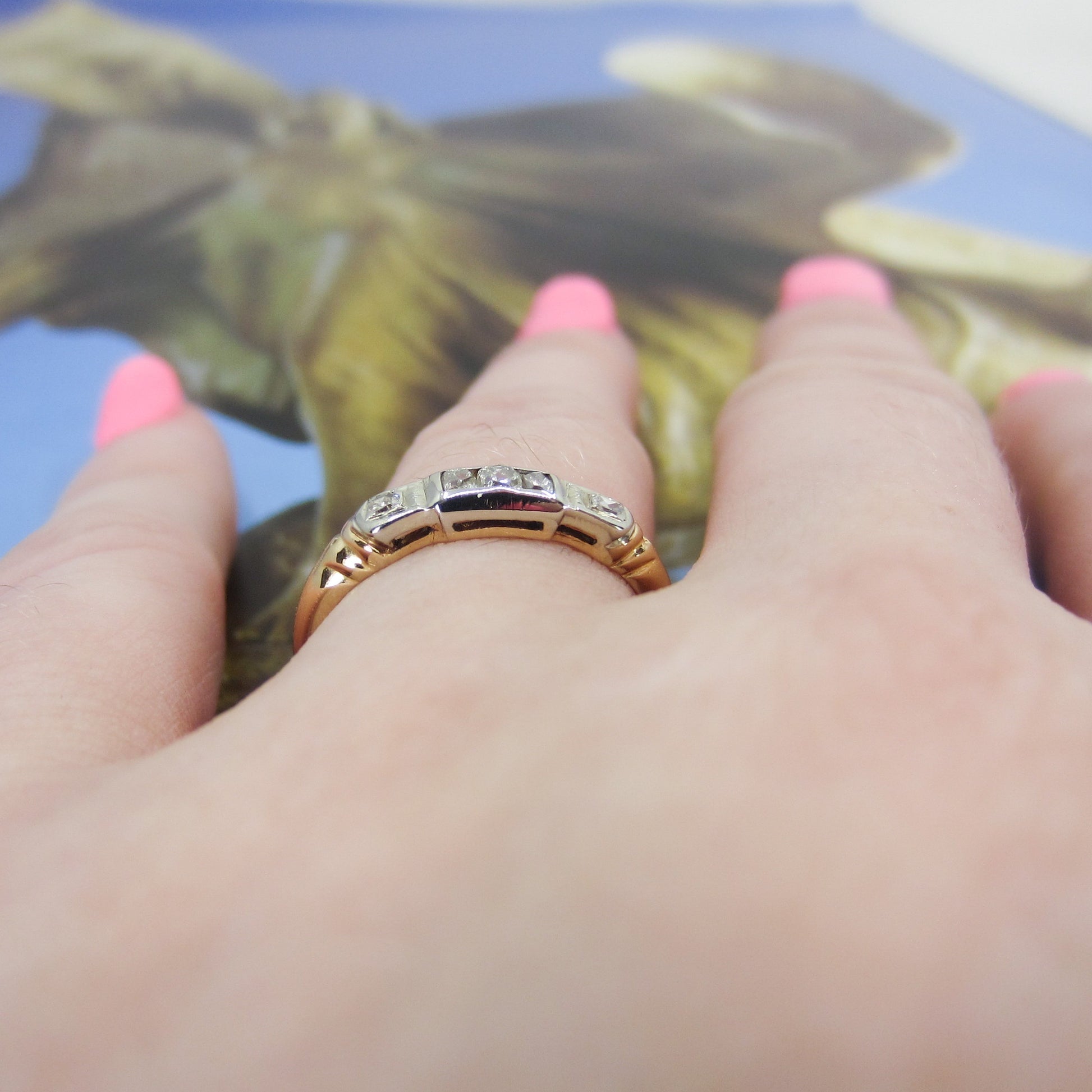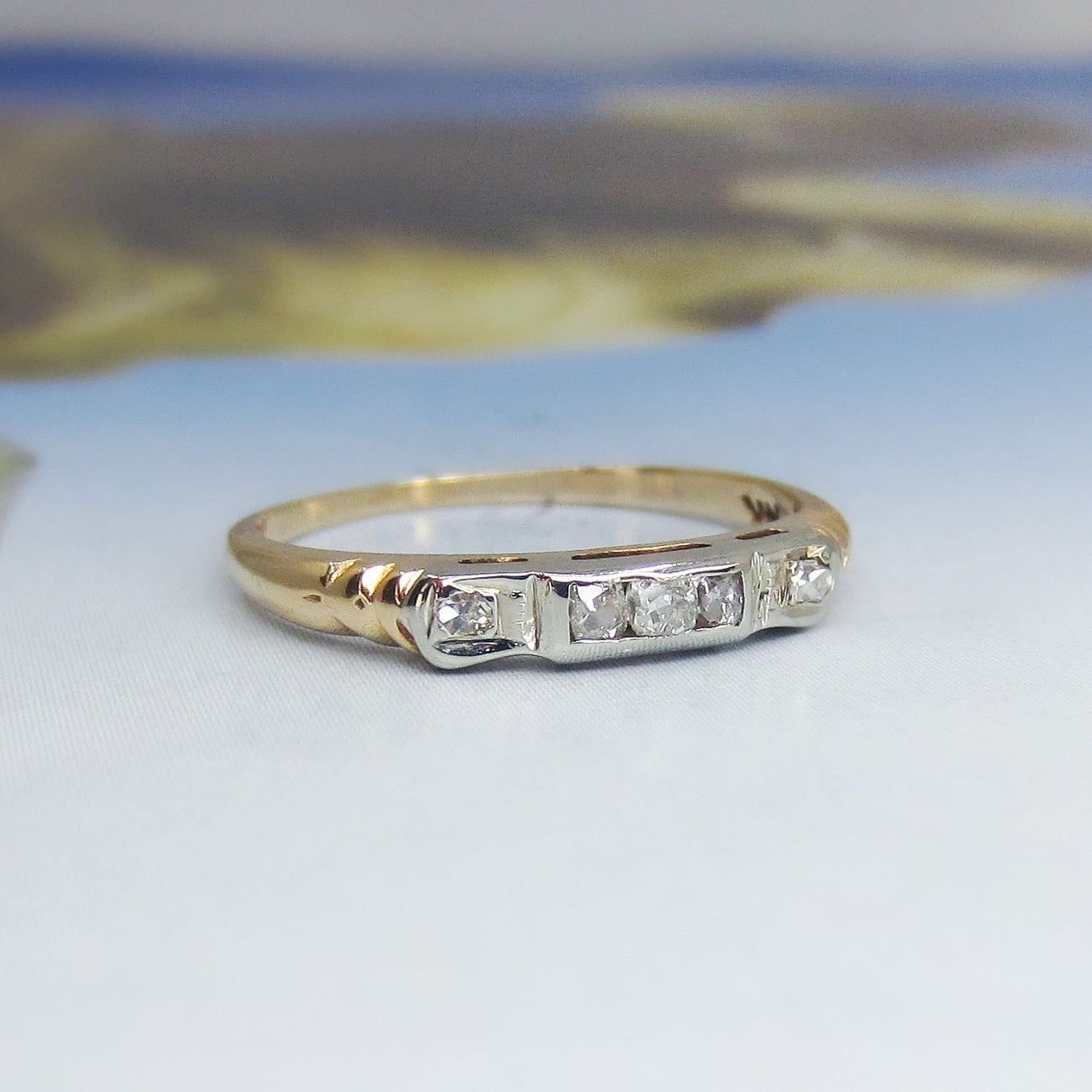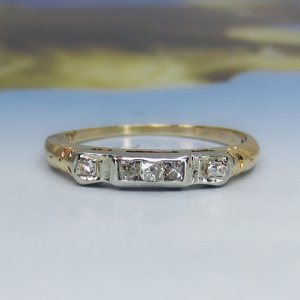 SOLD-Art Deco Two Tone Diamond Band 14k c. 1940