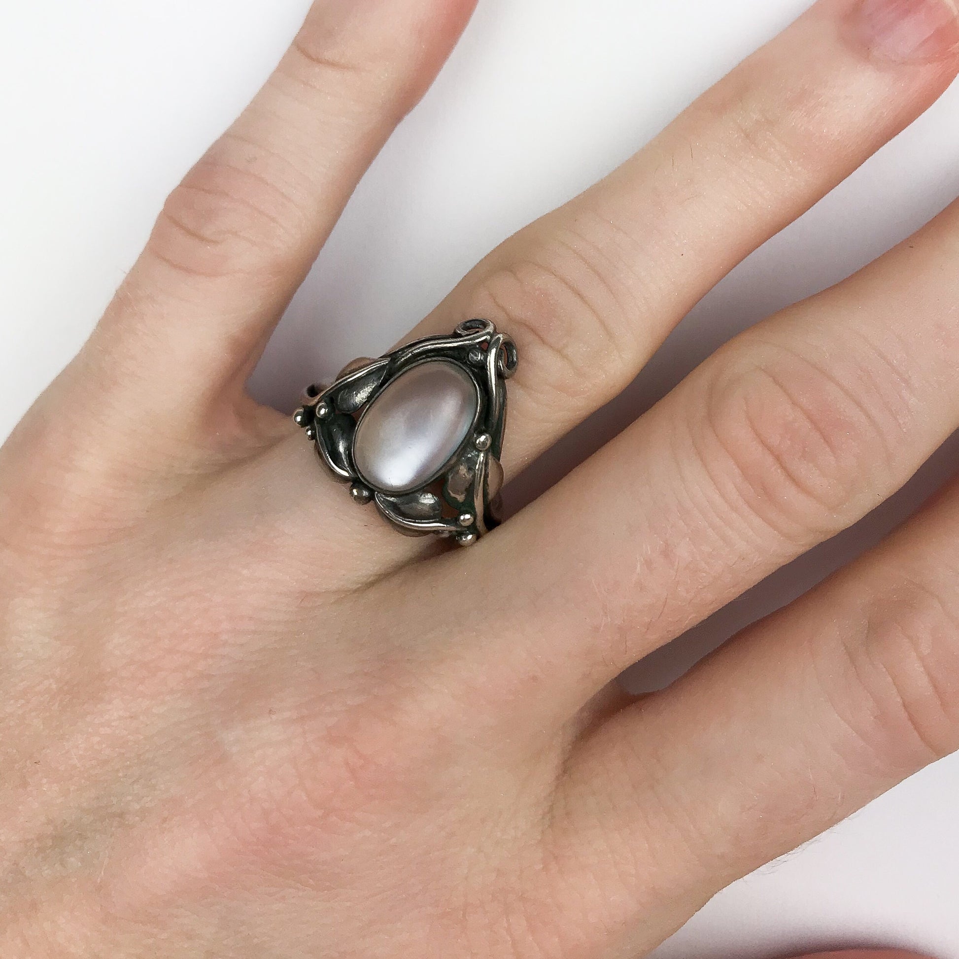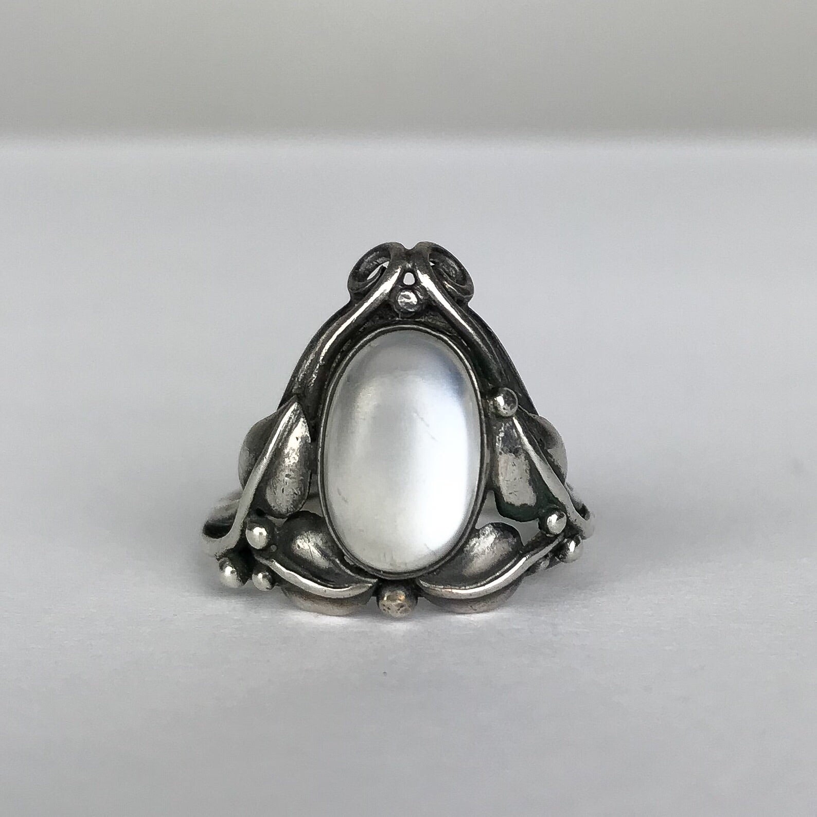 SOLD--Art Nouveau Moonstone Tiara Ring Sterling c. 1900